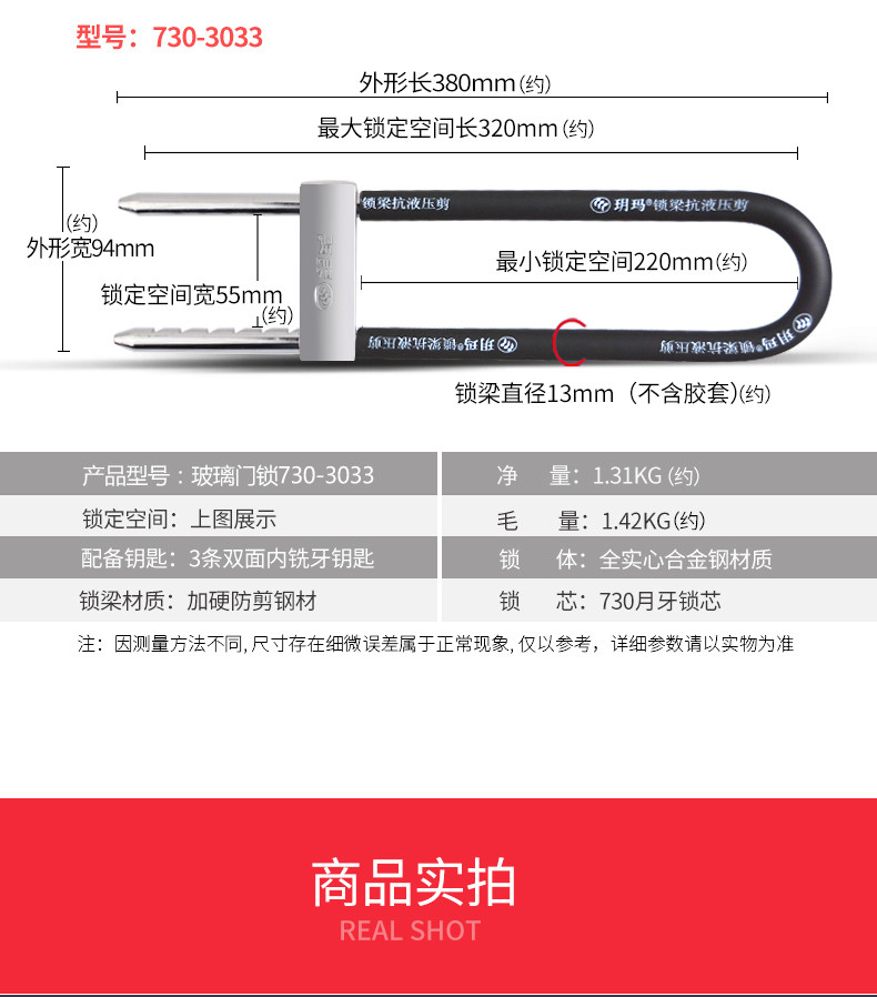 玥玛 Ультра -c -cclass стеклянный замок анти -ликвидный давление с длинной замкой стеклянная дверь дверная дверная дверная дверная дверная заглушка -отверстия -в u -shod