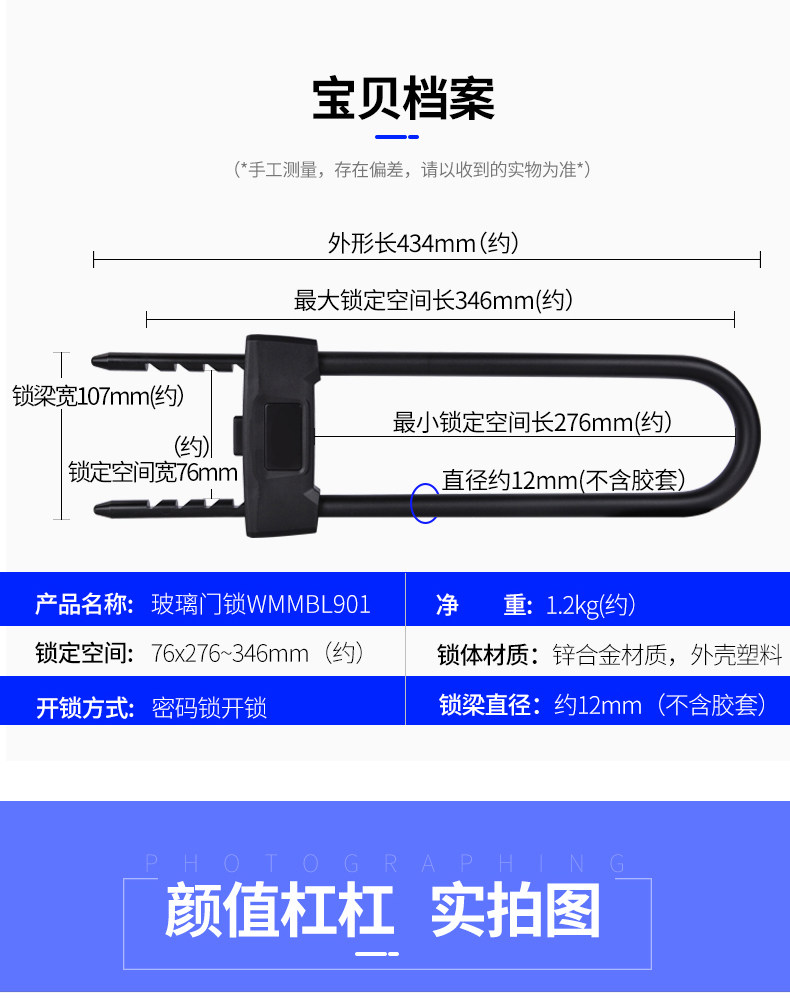 玥玛 Стеклянная дверная блокировка двойной u -обработанный шлюзовой замок замок u - -обрабатный замок против гидравлического кода разреза