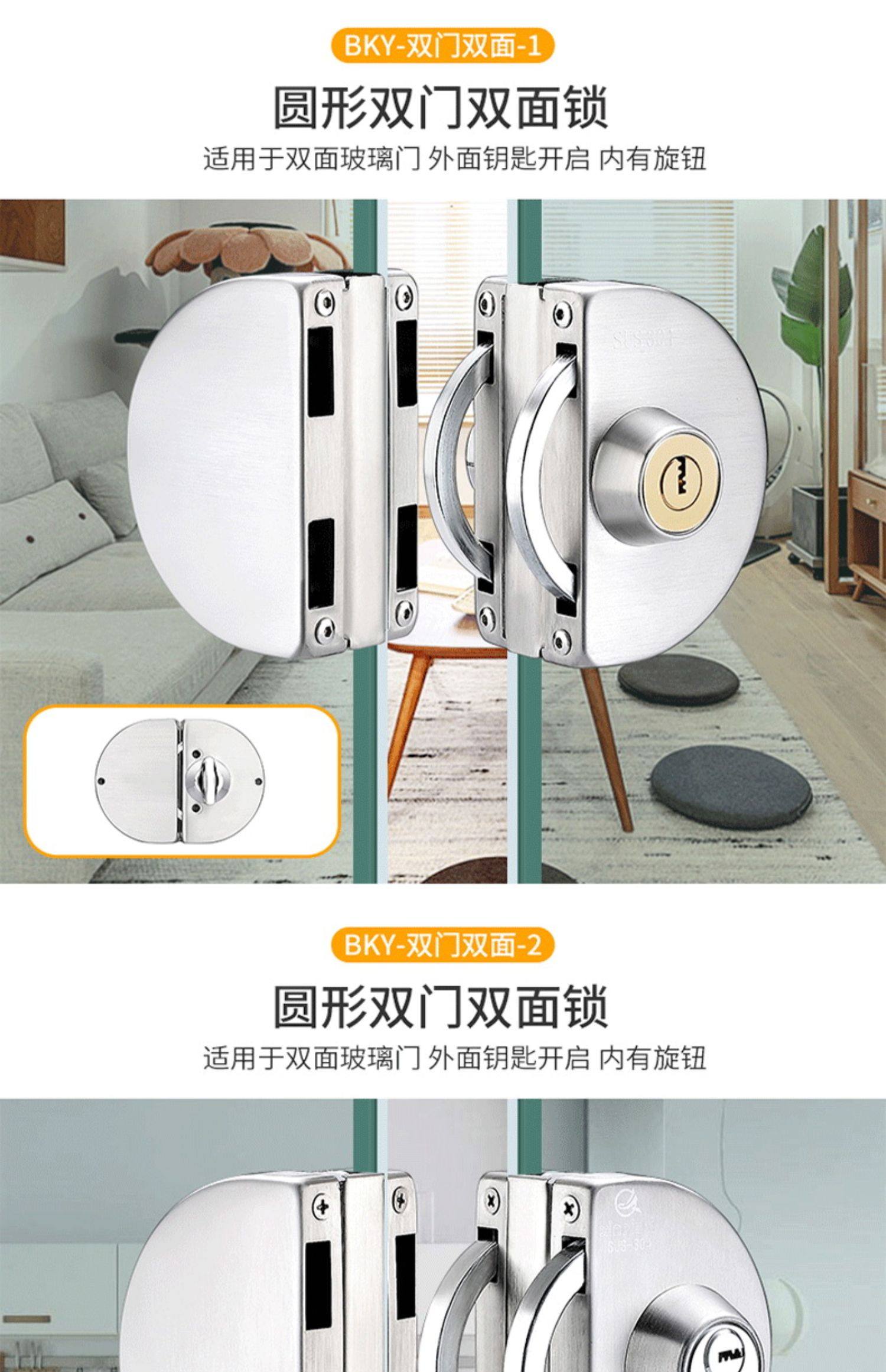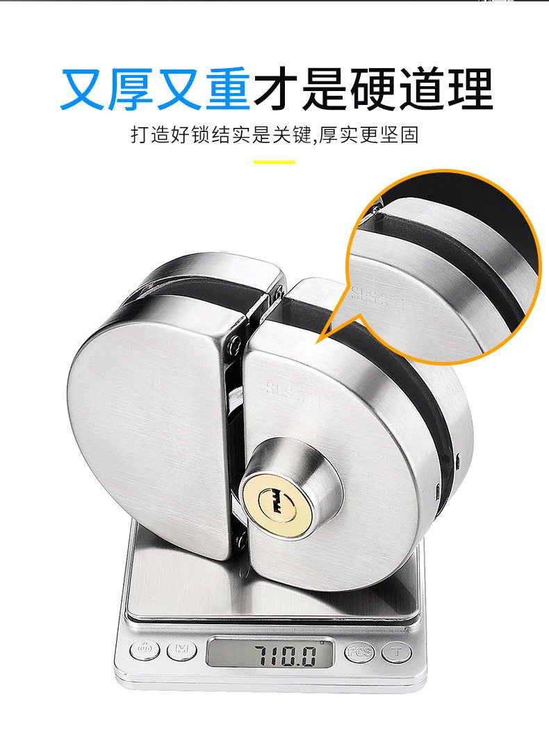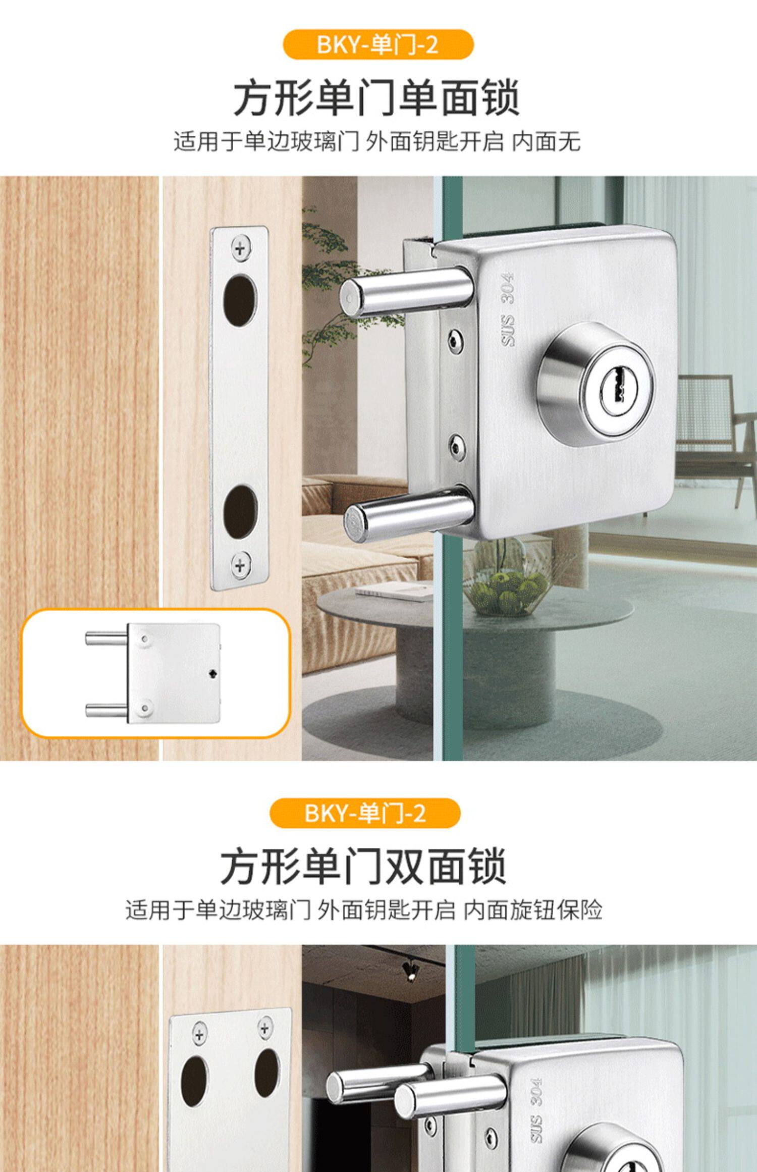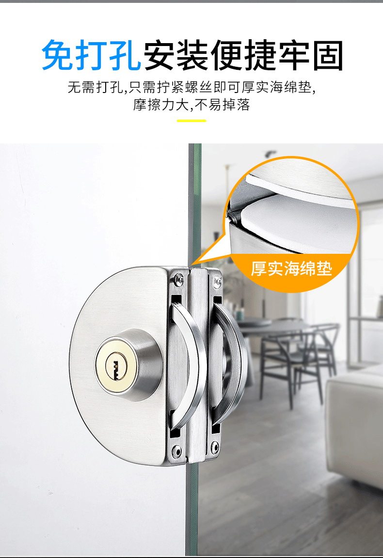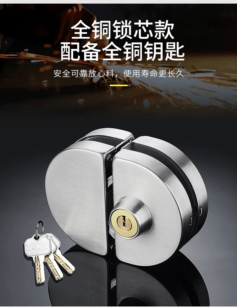 Стеклянная дверная замка двойной односторонний одно -ядерный бесплатный открытый магазин стеклян