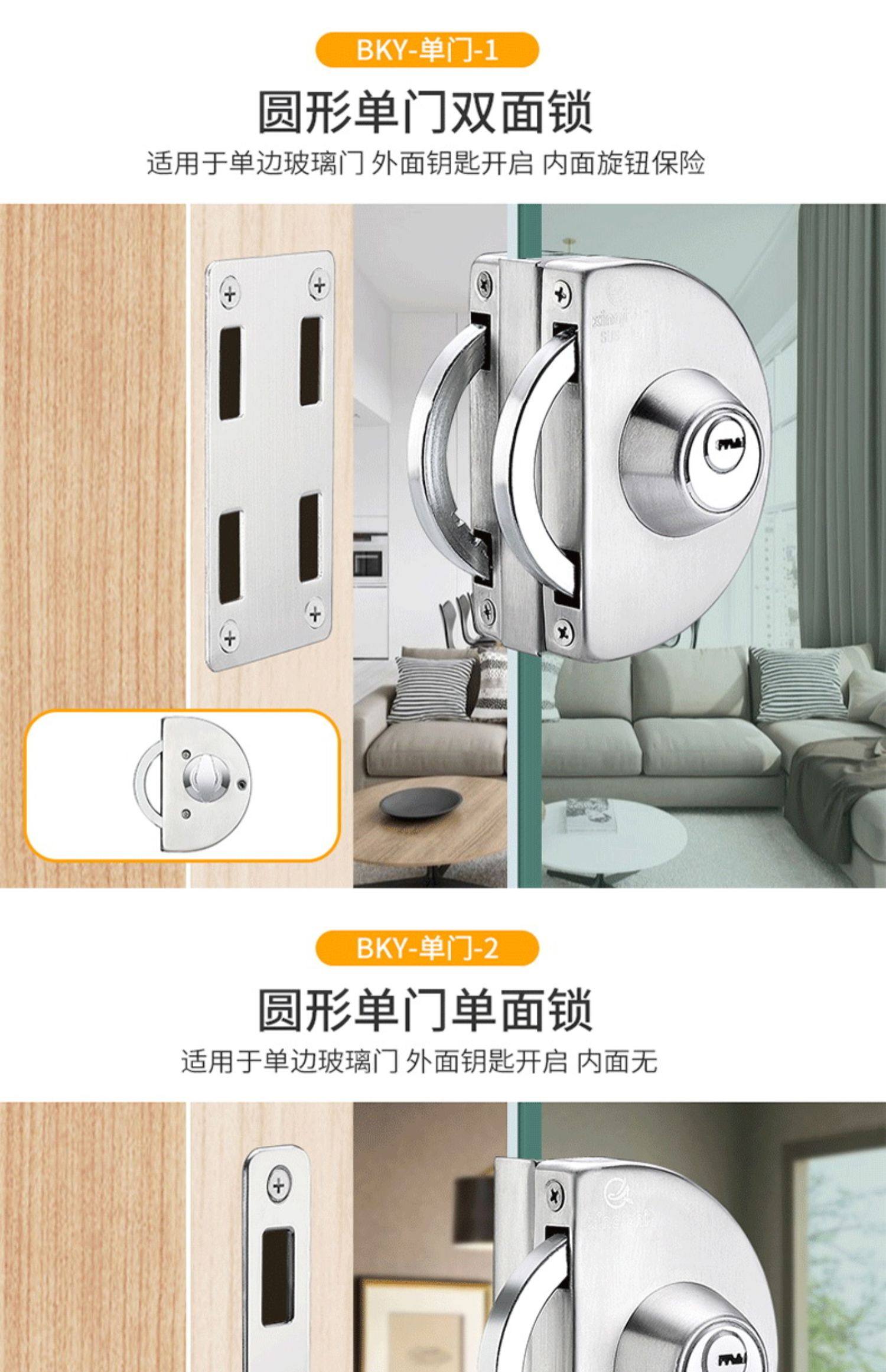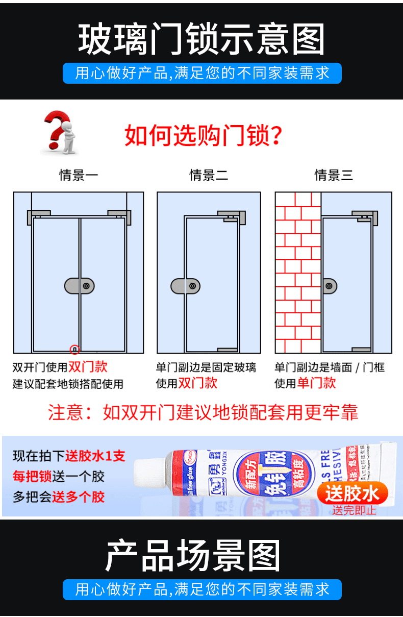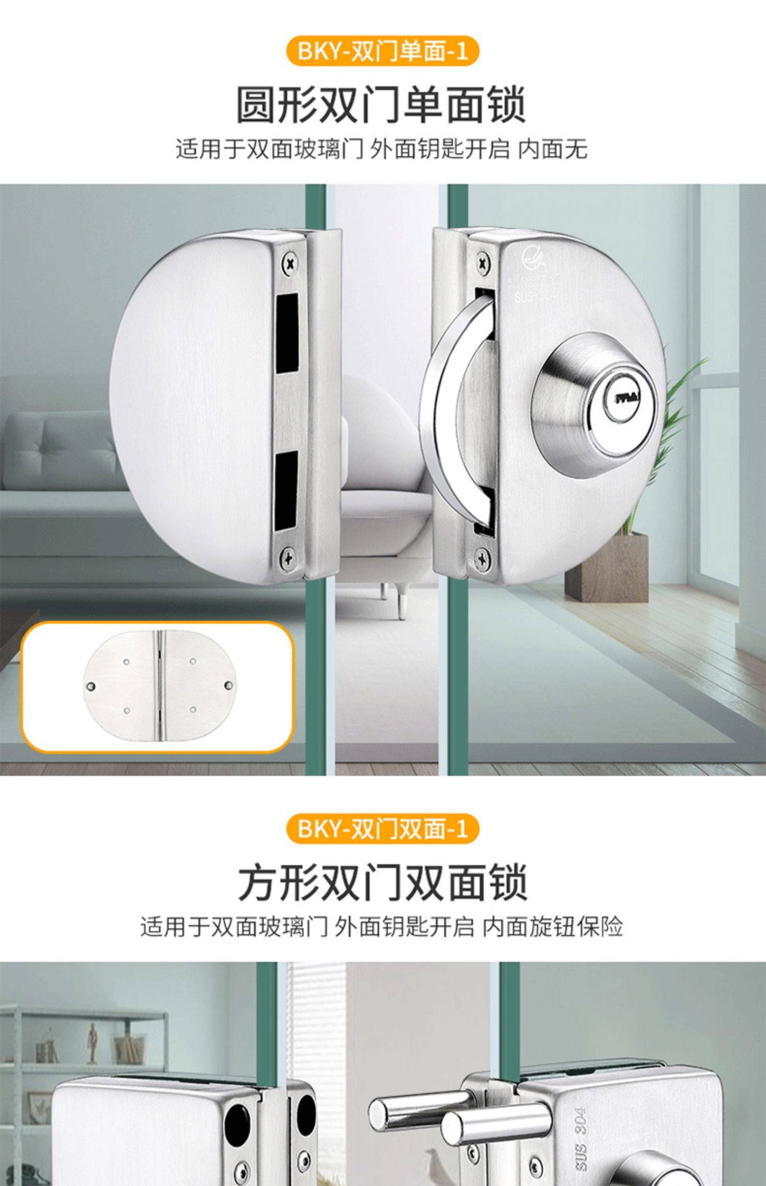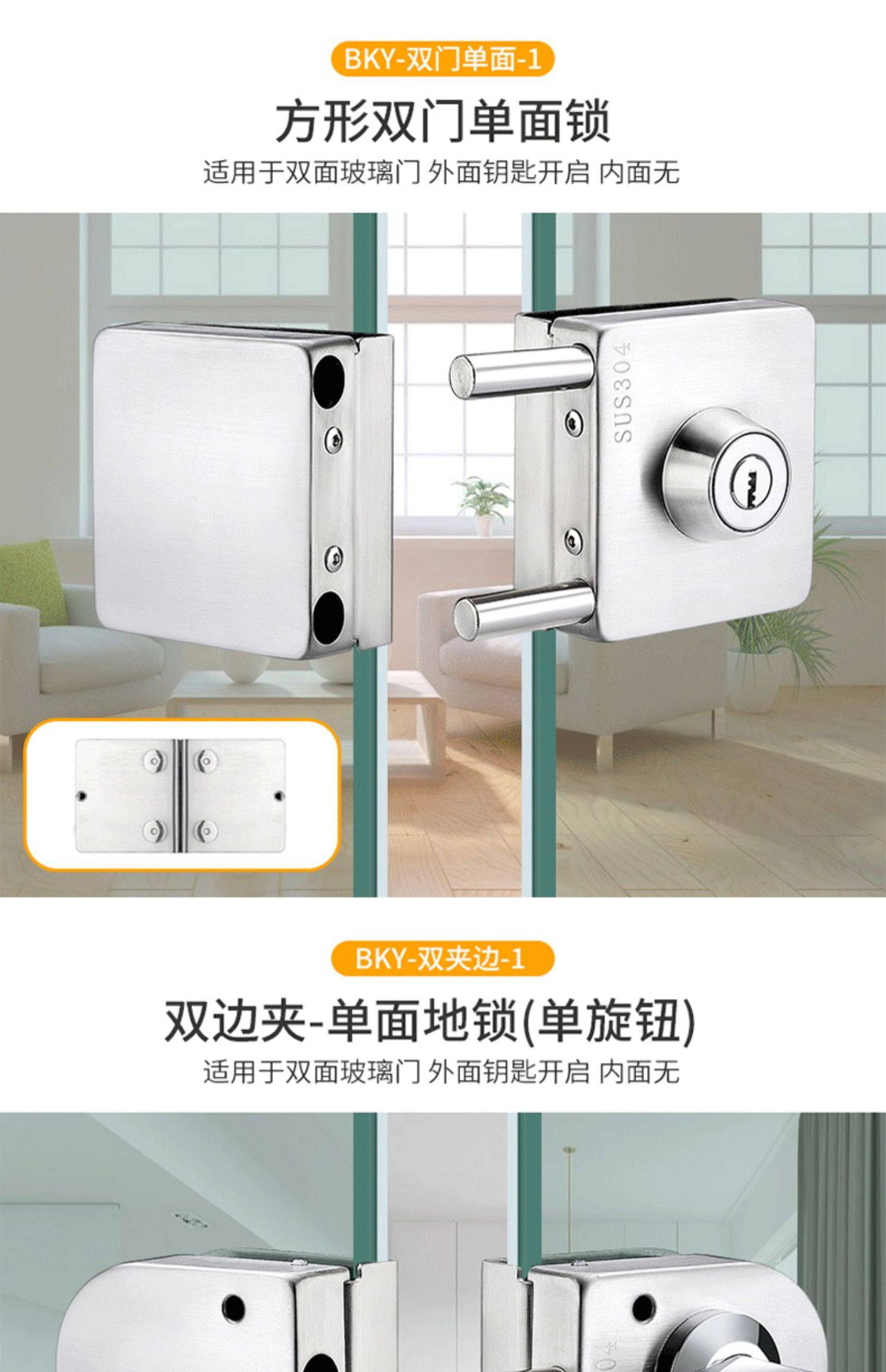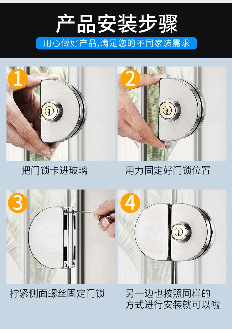 Стеклянная дверная замка двойной односторонний одно -ядерный бесплатный открытый магазин стеклян