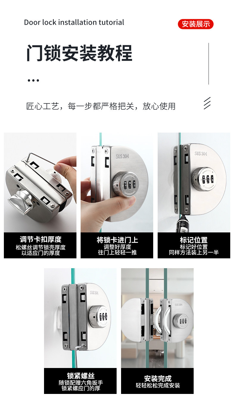 Офис из нержавеющей стали Офис Стеклянная дверь Пароль Средний блокировка Двойное открытие однократное однократное открытое -отверстие -Off -Off и Spredless Shop