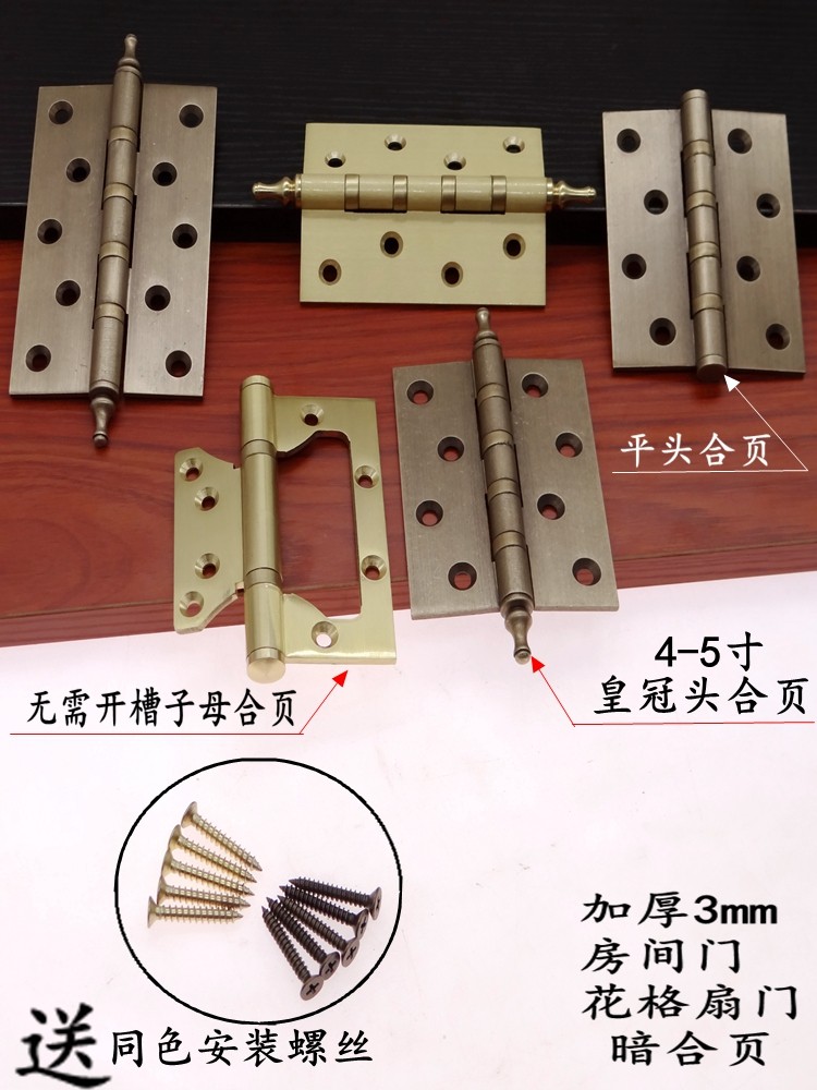Китайская антикварная петля из чистой меди, деревянная дверь, скрытая складная дверь шкафа, окно, экран, стиль вентилятора, утолщенная плоская латунная петля