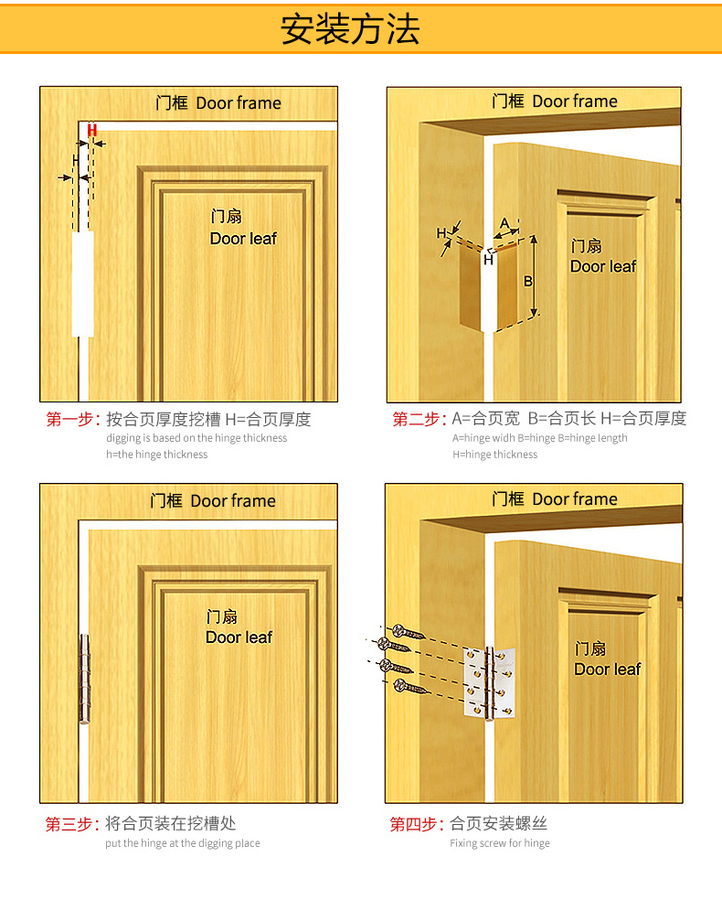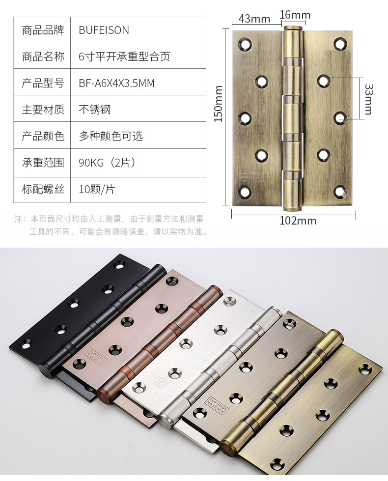 Bufei деревянные затворы Страница с толстым плоской плоской страницей из нержавеющей стали S Тихий комнаты -ворота -затвора ворота Хингл Холдинги и ширина