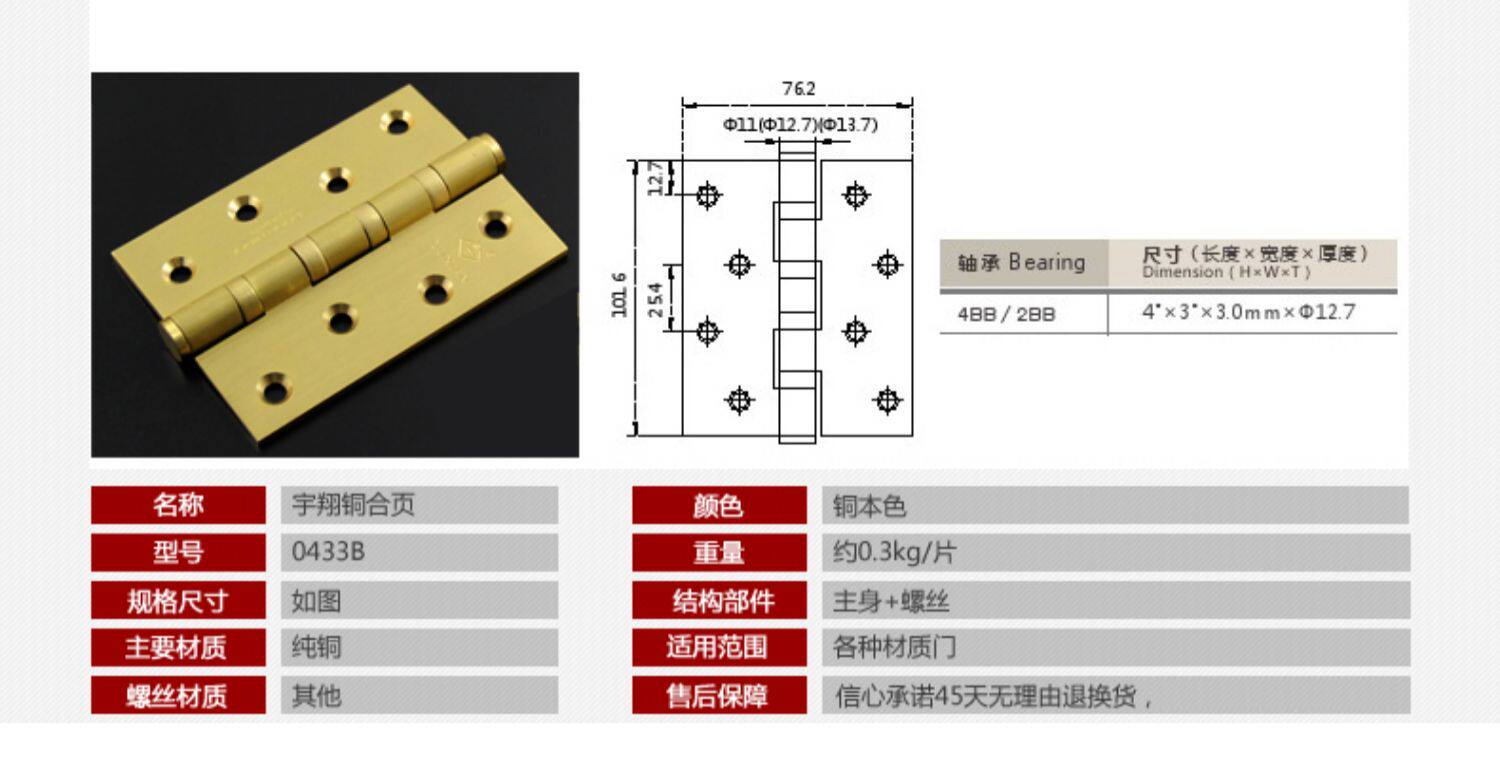宇翔 4 -дюймовый 5 -дюймовый 68 -дюймовый полный медный шарнир