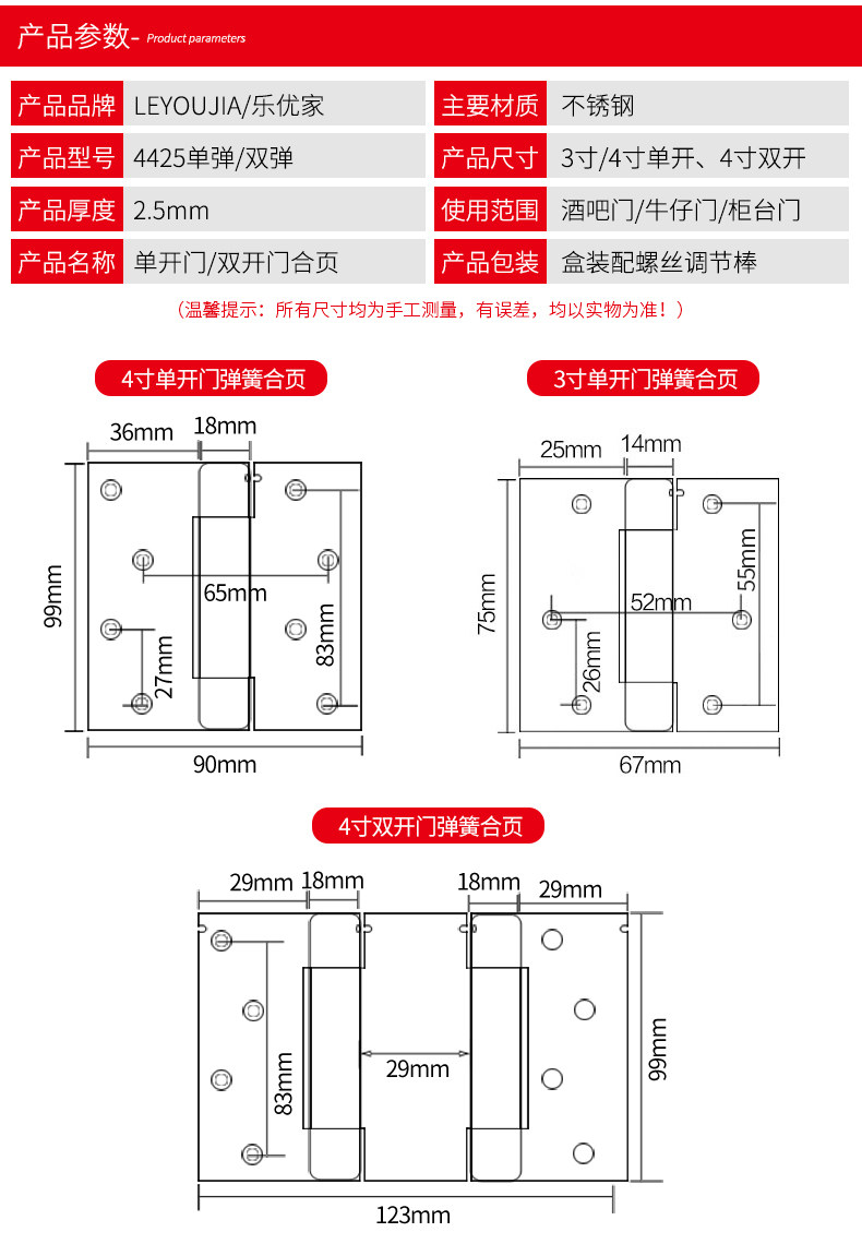 | Цвет: | 3 -INCH ЕДИНГОВАЯ БОМБА [однонаправленное отверстие], 4 -INCH ЕДИНАЯ БОМБА [Однонаправленное отверстие], 4 -INCH Double -Bomb Denim Door Union [два -пути открытия и закрытия], 4 -дюймовая пружина [позиционирование 90 градусов] однонаправленное, 5 -дюймовая пружина [позиционирование 90 градусов] однонаправленное |