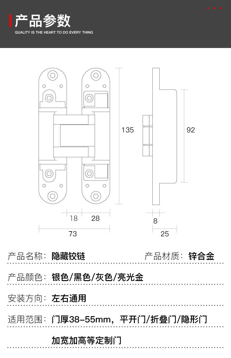 Невидимый регулируемый складной шарнир, цепочка, 135x, делается под заказ
