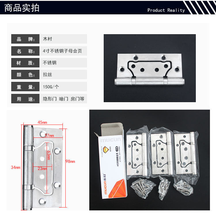 Упаковка из нержавеющей стали, комплект, платиновый бронзовый шарнир, 4 дюймов