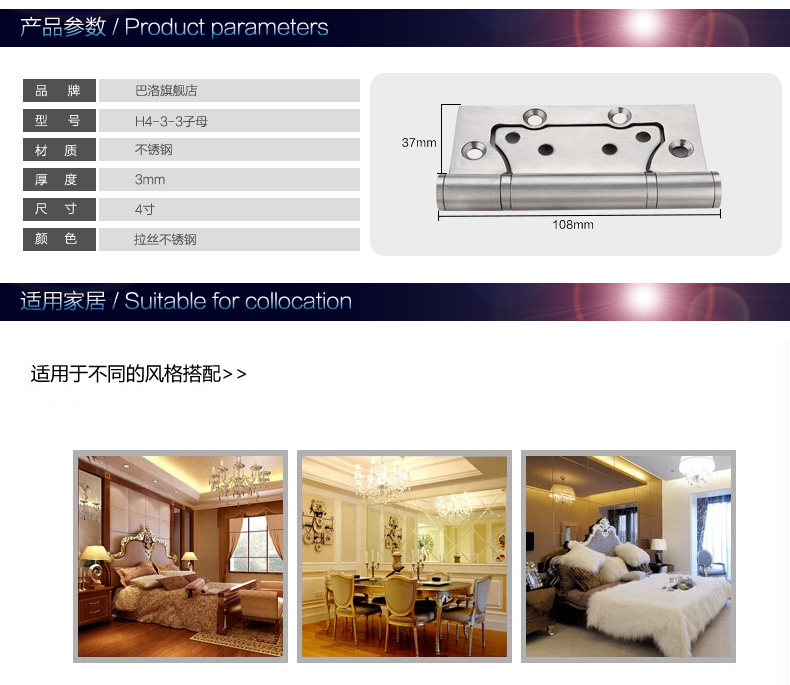 Подшипник из нержавеющей стали для спальни, шарнир, 4 дюймов, увеличенная толщина