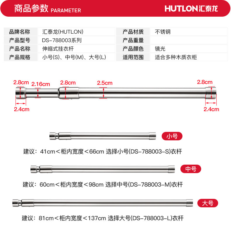 Huitai Long Wardreobe Wardreobe Telecopic Telecopic Vishing Clothing Stord Wardrobe Шкаф шкаф для подвесного шкафа петух петух