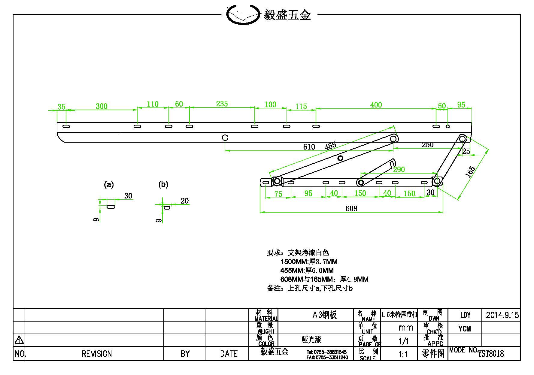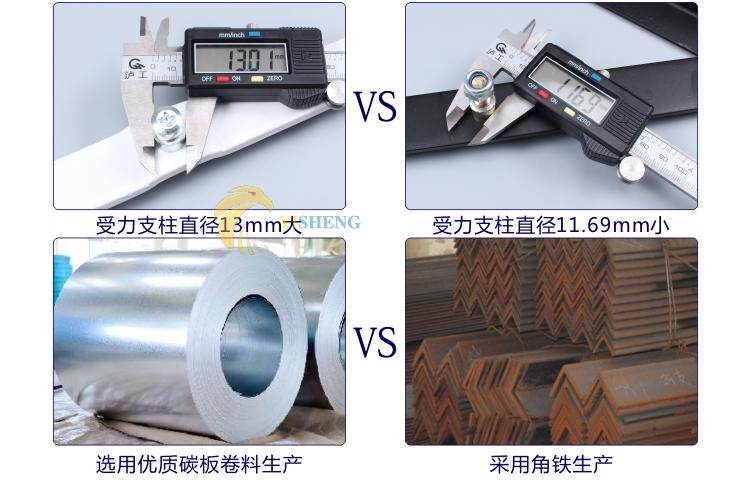 [我们产品表面光亮,烤漆厚实,不易刮花,防锈处理效果好。材料采用碳钢板折弯而成,表面平整,硬度够!各连接扁铁之间增加活动垫圈,使用更顺畅,各连接五金配件通过环保电镀处理,可通过]48[小时以上盐雾测试!]