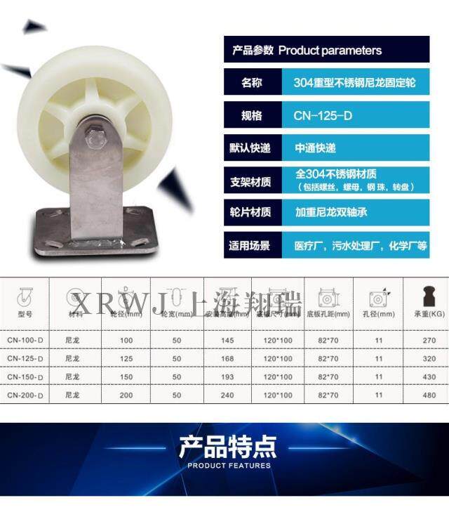 5 -Веса, 304 Нейлоновое колесо из нержавеющей стали/125 -мм износ -устойчивое колесо/фиксированное колесо/5*2 анти -коррекции