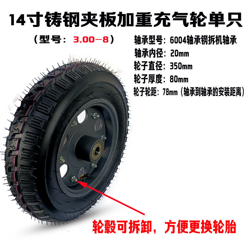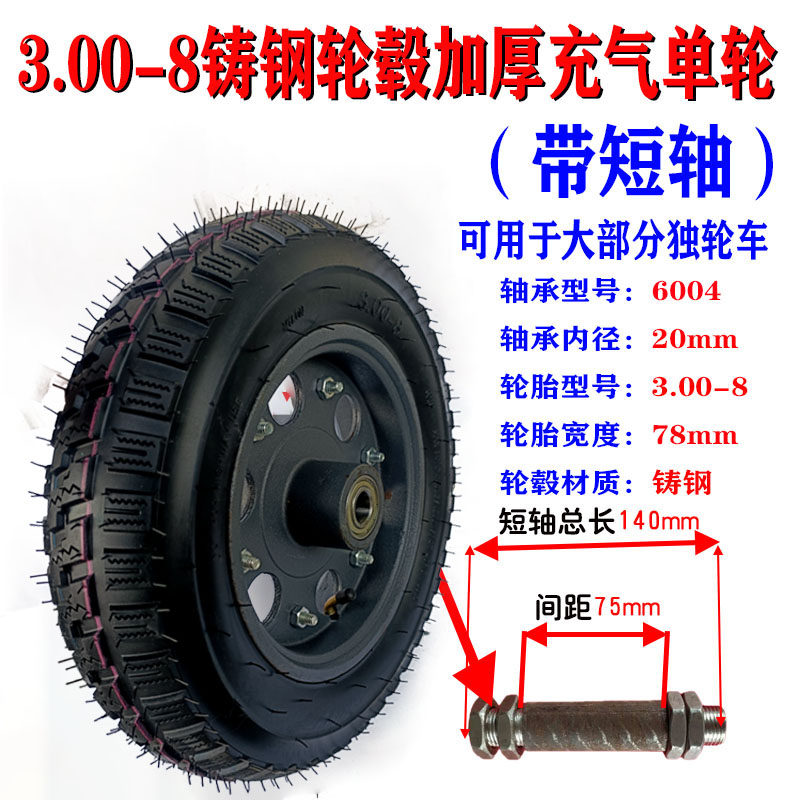 - 3.00-8 литое стальное утолщенное надувное колесо с осью 1 метр 2