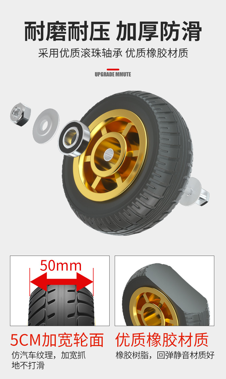 Тележка, резиновое колесо, универсальный прицеп, 45 дюймов, поворотные колеса