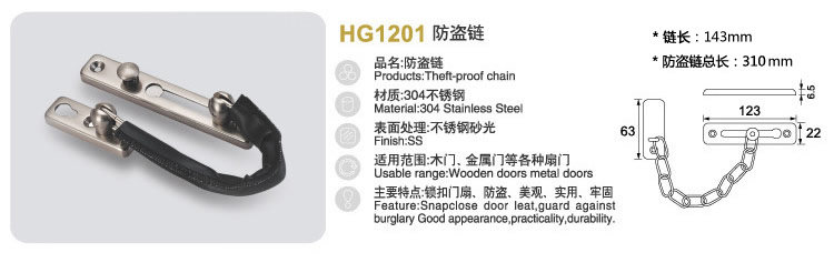 三环 Утолщенный SUS304 из нержавеющей стали боевой цепь, защитная цепь Дверей Дверь Сильное воздействие тис чистого стиля