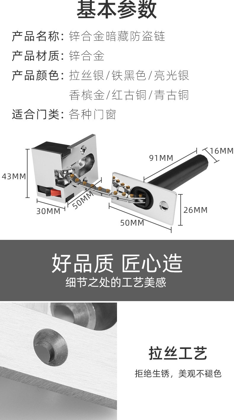 Дверь отеля Скрытая анти -масштабная цепь скрытая цепочка безопасности.