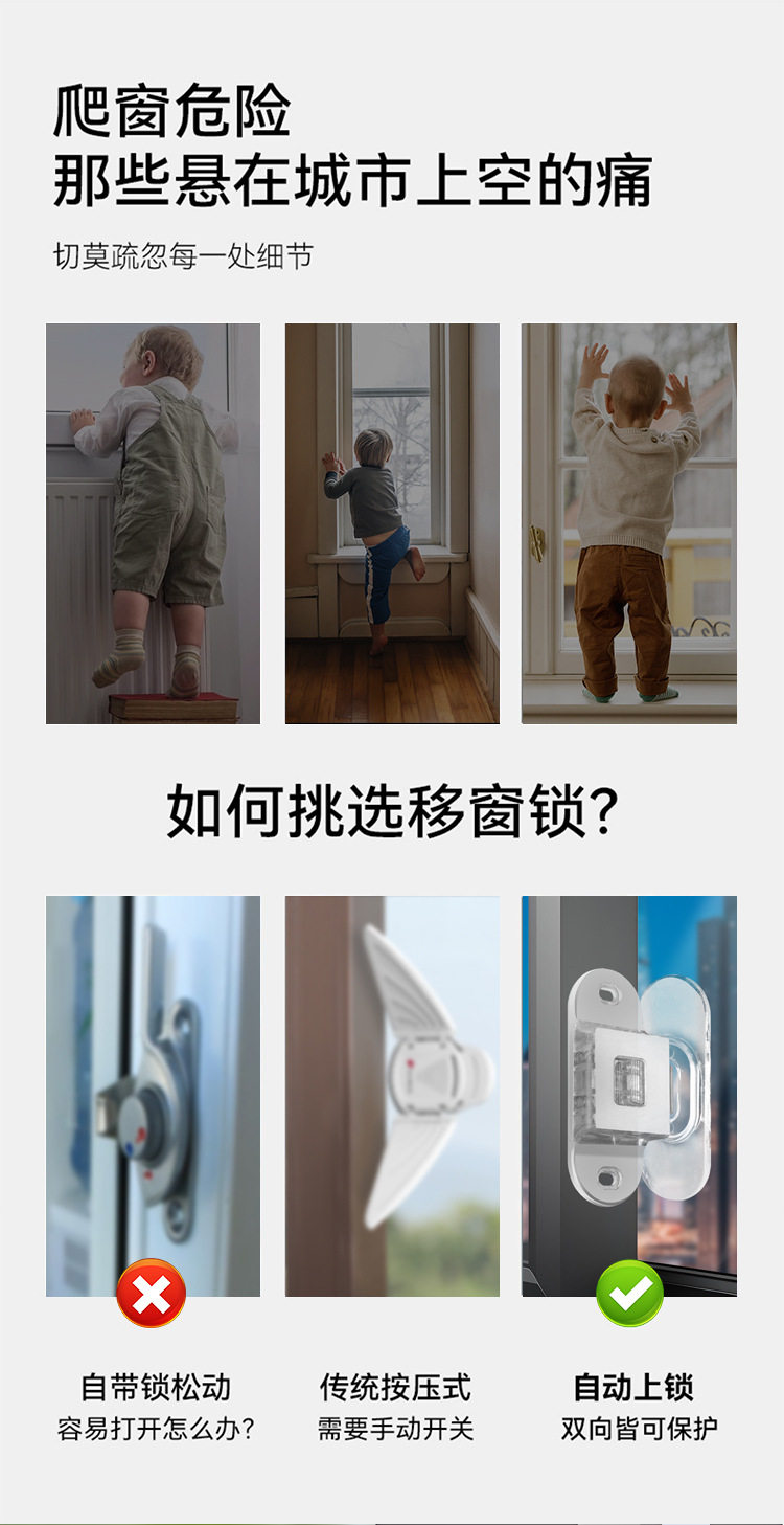 Детский стеклянный оконный замок, фиксаторы в комплекте