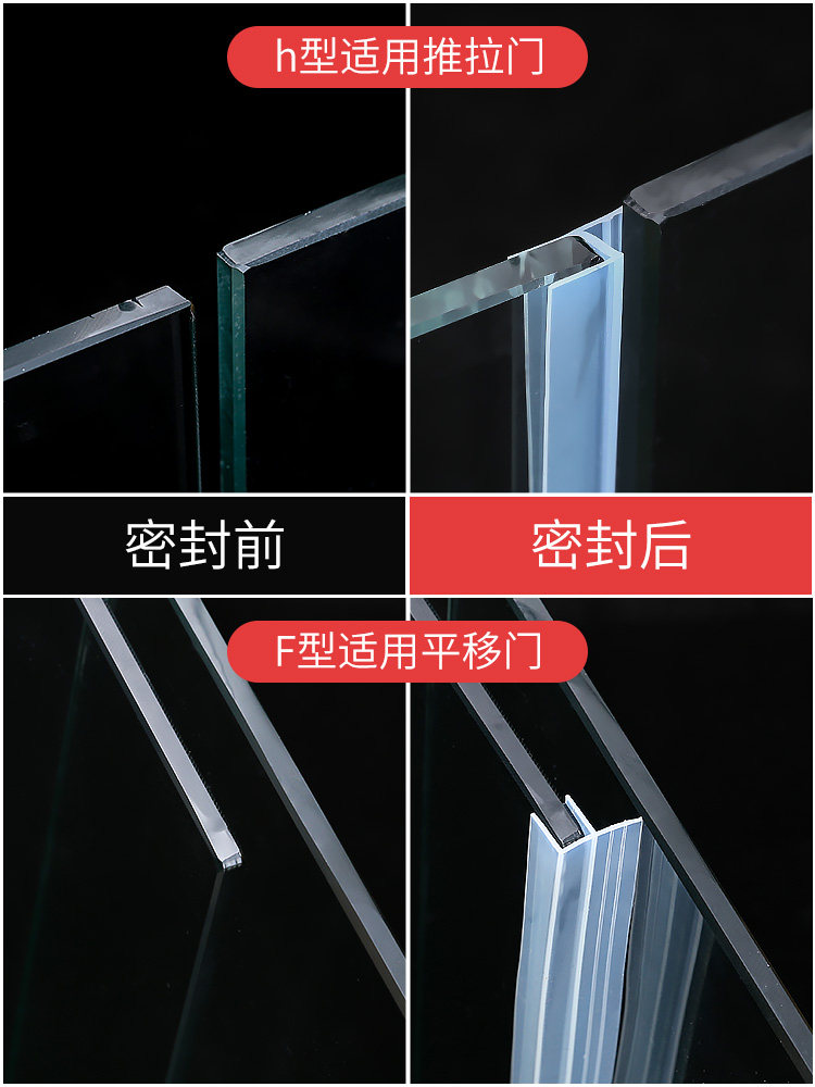 Стеклянная дверная полосатая душевая комната H -безрамная раздвижная дверная дверная зазор, край водонепроницаемой воды, пылепроницаемость и ветрозащитные, ветрозащитные и ветропроницаемые