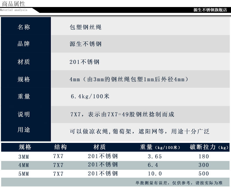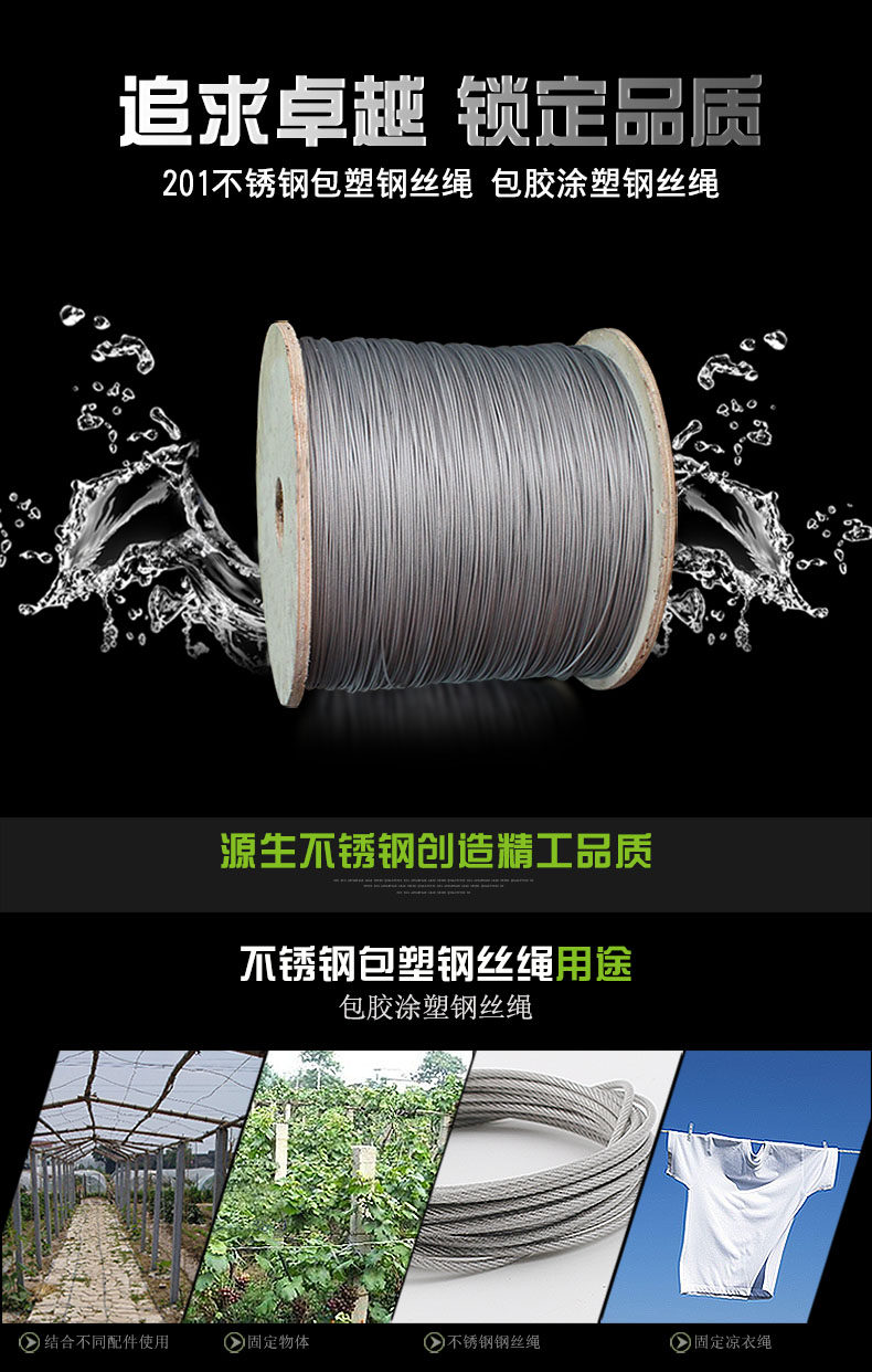 源生不锈钢 Стальная проволка, сушилка, пластиковая бельевая веревка, диаметр/размер 7, 7x