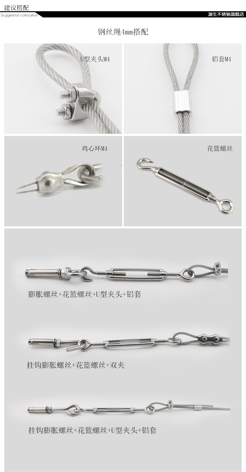 Толщина 4 мм, 1,6 юаня на метр, длина самостоятельно определяется, и весь корень не сокращается.Одно стальной проволочной веревки без аксессуаров, пожалуйста, возьмите его отдельно, если вам нужны аксессуары.
