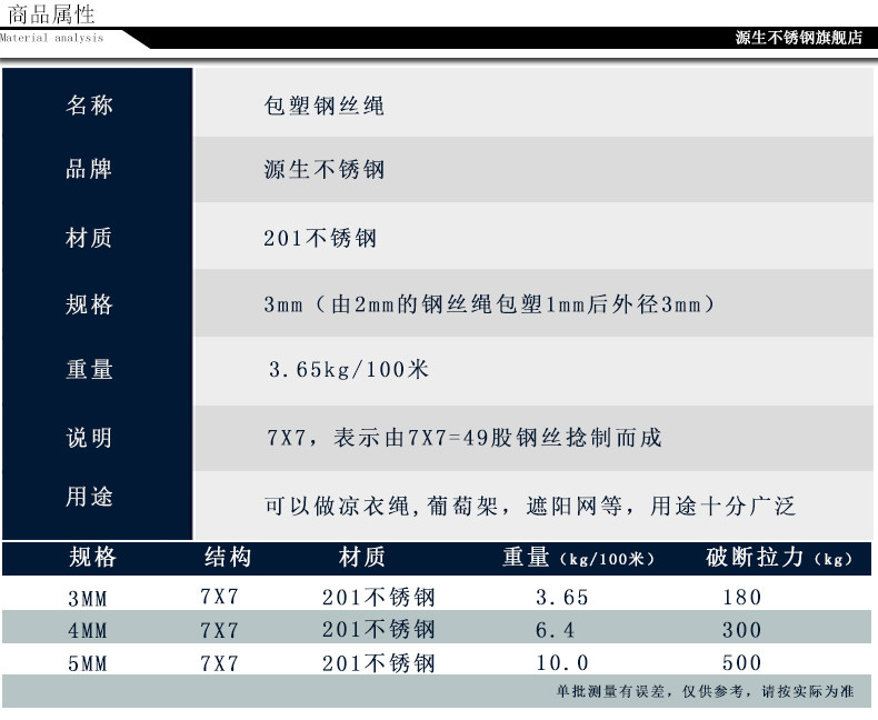 源生不锈钢 Стальная проволка, сушилка, пластиковая бельевая веревка, диаметр/размер 7, 7x