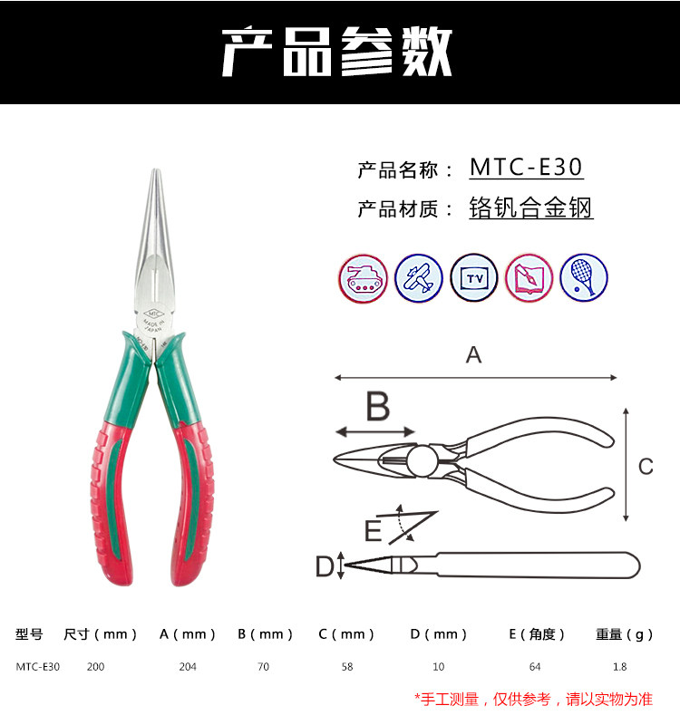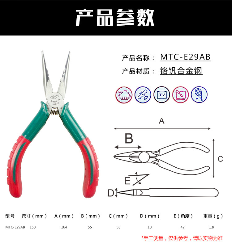 日本MTC MTC-E29B/MTC-E29AB/MTC-E30 Игла Pliers/Electrical Tiers Двухцветная ручка