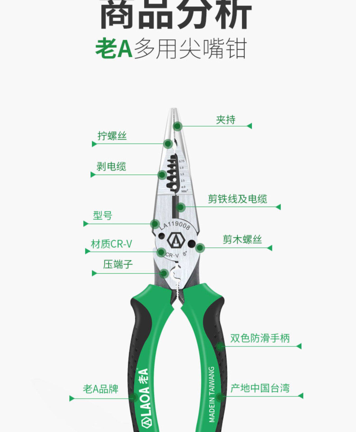 老A Китайские универсальные плоскогубцы с игольчатыми наконечниками, кабельные клещи, стальная проволка