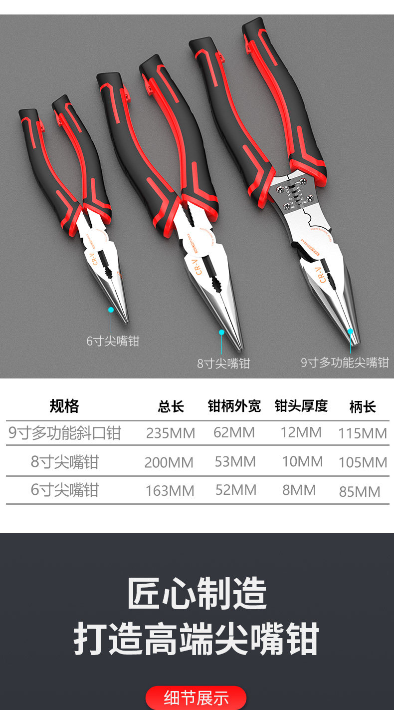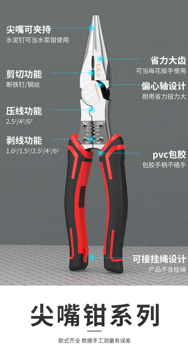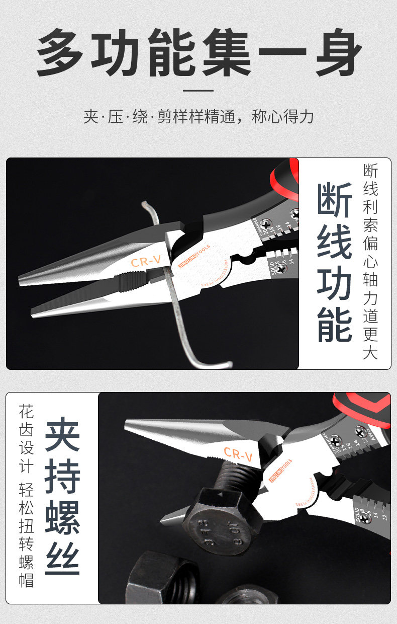 Универсальные плоскогубцы с игольчатыми наконечниками для домашнего использования, портативные кабельные клещи, 6 дюймовые, 8 дюймов, тигр
