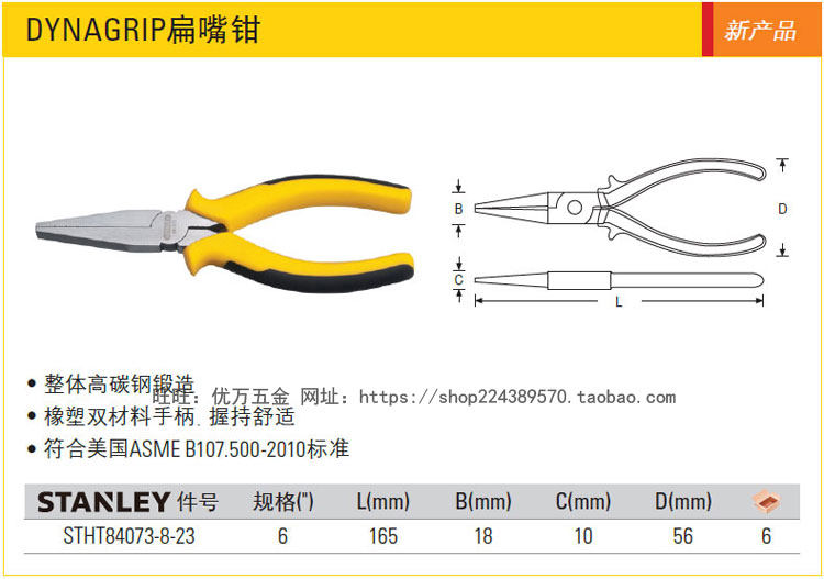 Стэнли DynaGrip плоский во рту зажим 6-дюймового плоского зажима STHT84073-8-23 Черная ручка 5 дюймов 84-122