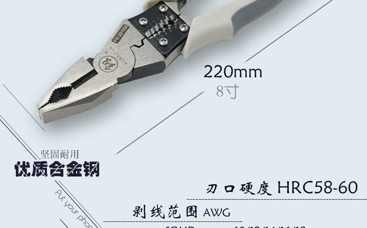 Японские инструменты Fukuoka Super Strong, рабочую многофункциональную стальную проволочную плоскогубцы Tiger Line Line Deploning Tool 2016a