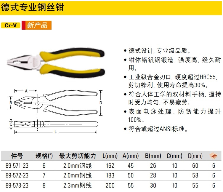 89-572-23 Стэнли 7-дюймовые тигровые зажимы Профессиональные стальные плоскогубцы плюс плоскогубцы плоские щипцы 89-571