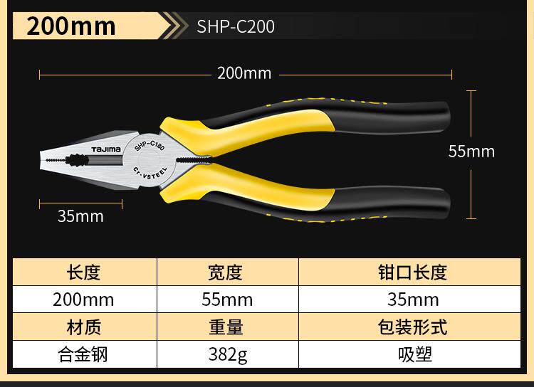 - 8-дюймовый проводной зажим с прямым ртом SHP-C200ZB