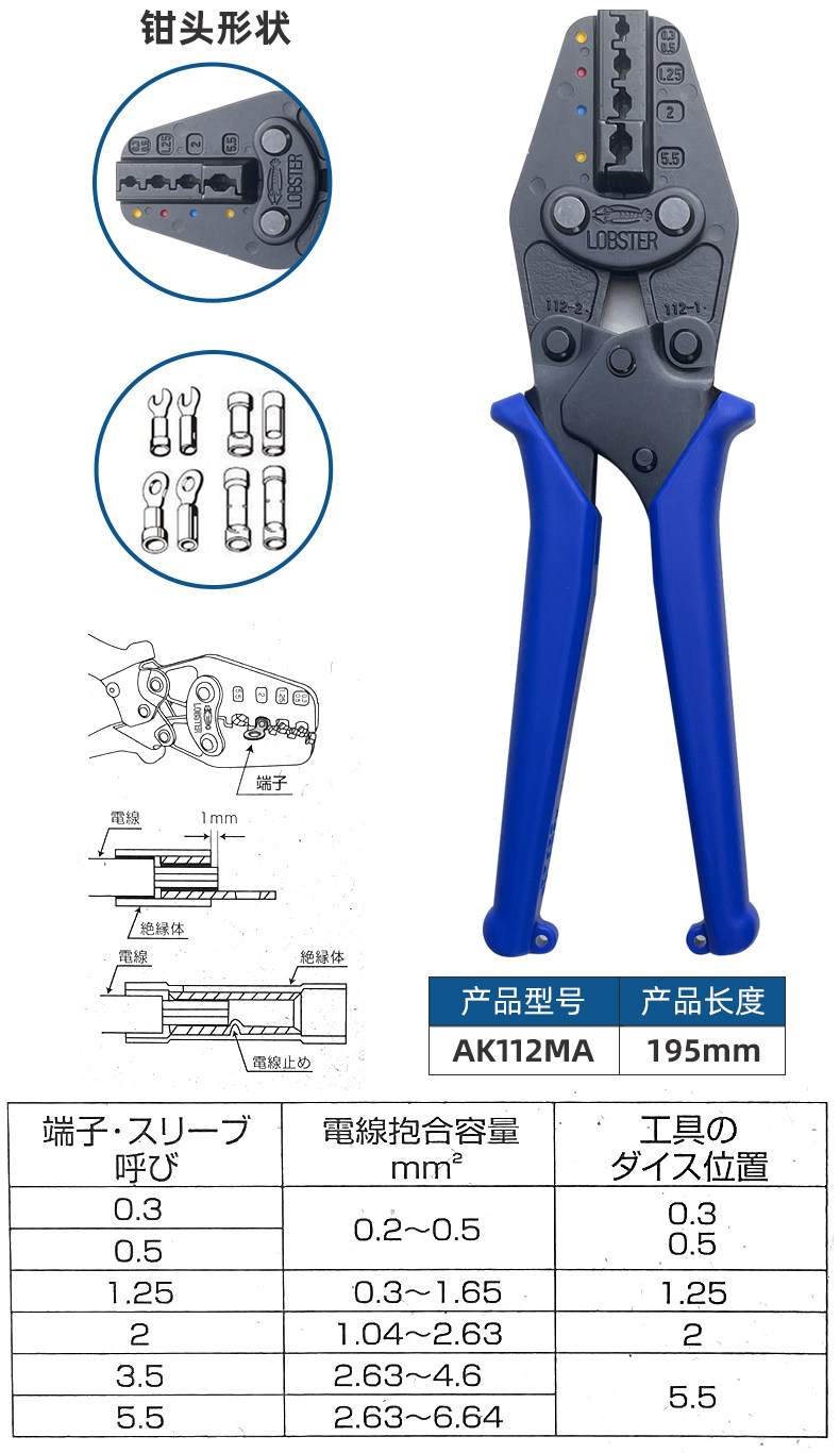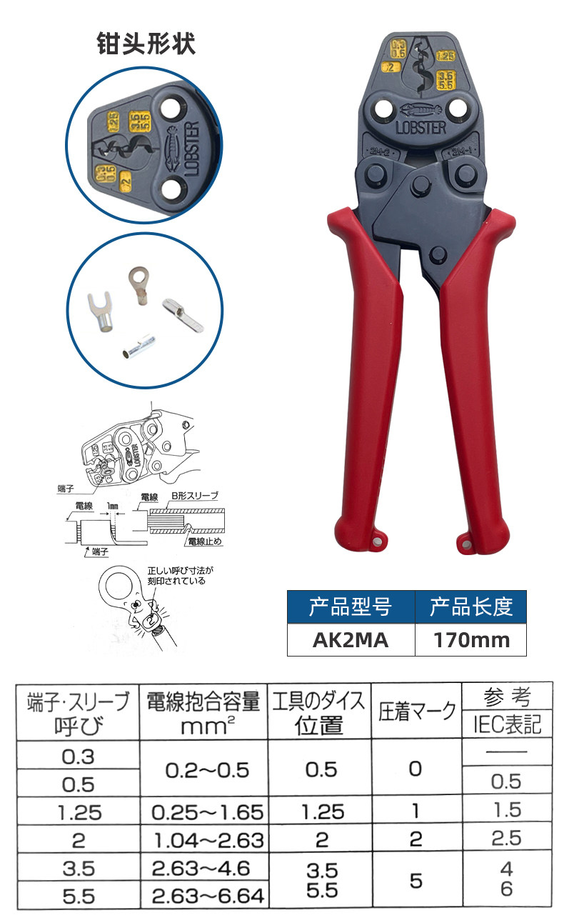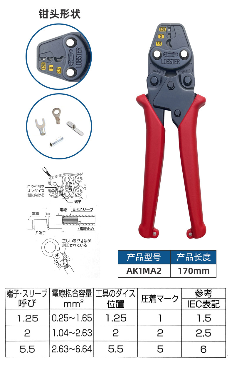 Японская бренда креветок лобстера позвоночника в дробилках обнаженной терминал прижимающий зажим Ak-1ma2/15a/2ma/25ma