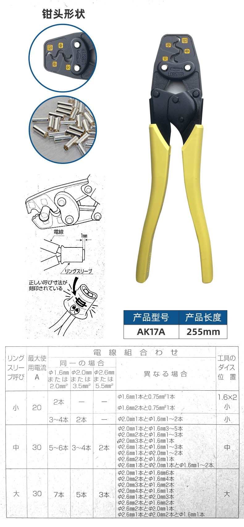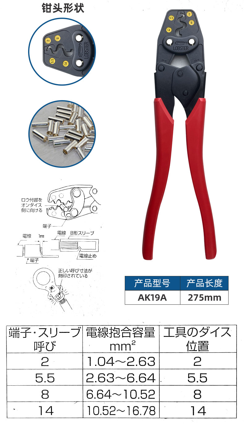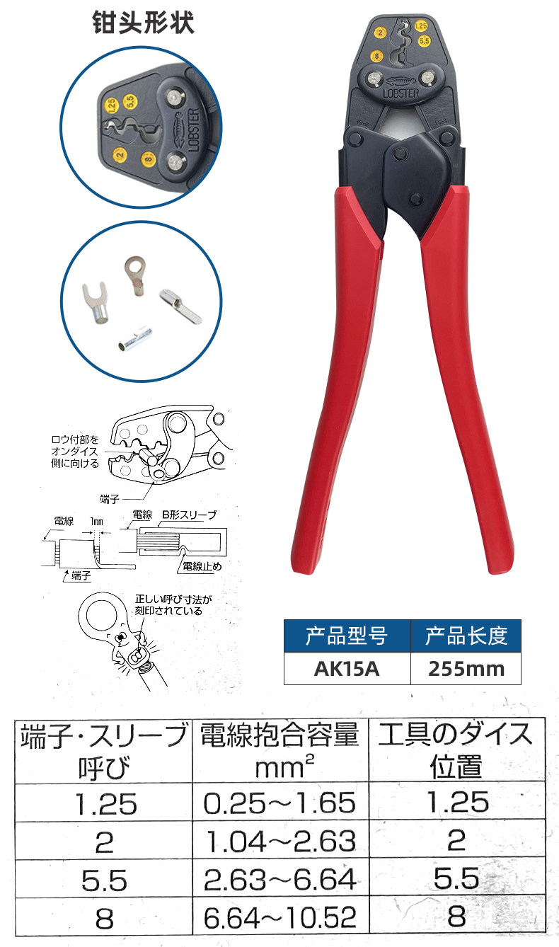 Японская бренда креветок лобстера позвоночника в дробилках обнаженной терминал прижимающий зажим Ak-1ma2/15a/2ma/25ma