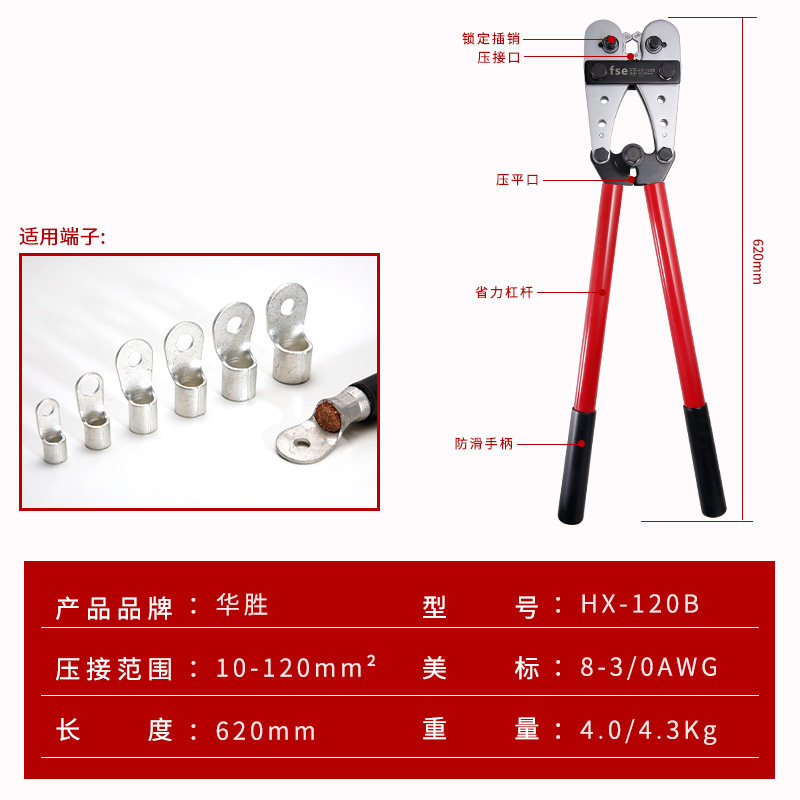 Huasheng Большой Y-образный медный нос нос голый терминальный трубопровод 10-120 квадратных UT/OT терминал HX-120B