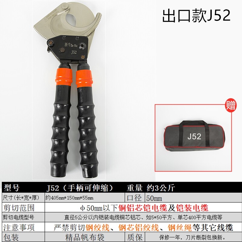 Кабель, ножницы, кусачки с шестернями, медные кабельные клещи, J40/52/75/95/100