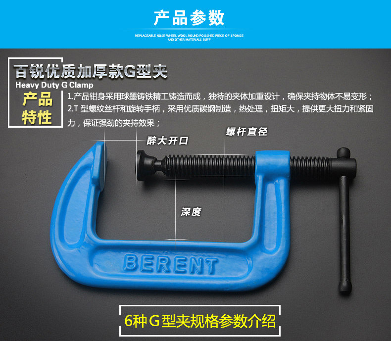 Bai rui g -shed Clip 2 ~ 8 -Inch C -обработанный F -обработанное светово -тип -тип -тип G - -обрабатываемая прикрепление держателя деревянного зажима с большим зажимом