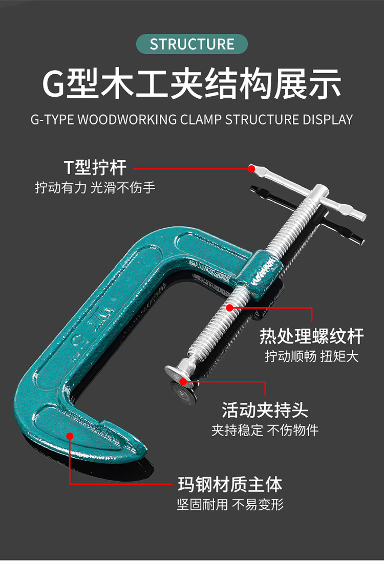 Тяжелый g -Завый клип C -образованный клип с железным зажимом мощный f Держа Деревянная плата Фиксированный зажимной зажим для зажигания