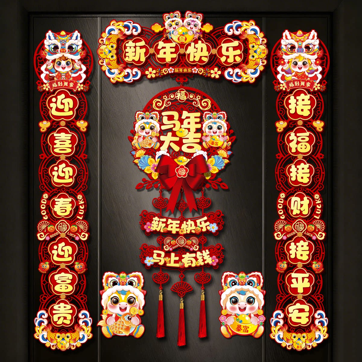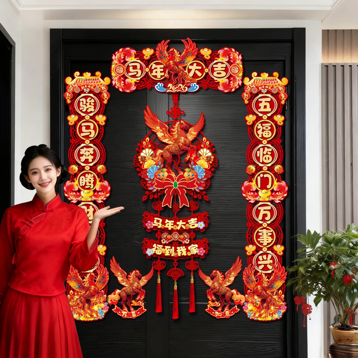 2026 Новый год Весенний фестиваль Магнитные куплеты Год Лошади Весенние куплеты Флокирование Домашнее украшение Новогодние дверные благословения Дверные наклейки
