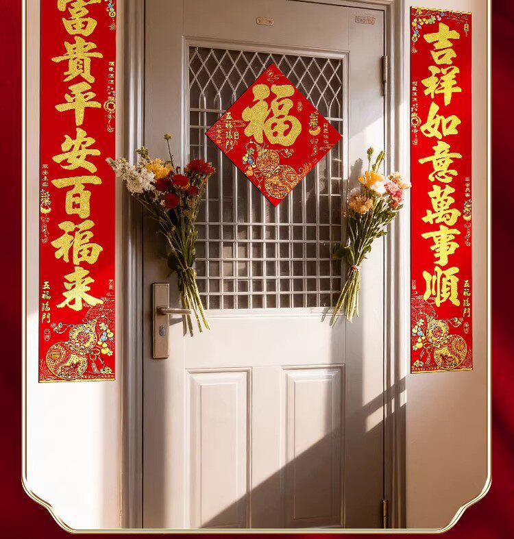 Куплет 2026 Год Лошади, новые куплеты для праздника весны, новогодние двери, бархатные самоклеящиеся дверные куплеты, праздник весны для дома, высококачественные наклейки на двери виллы