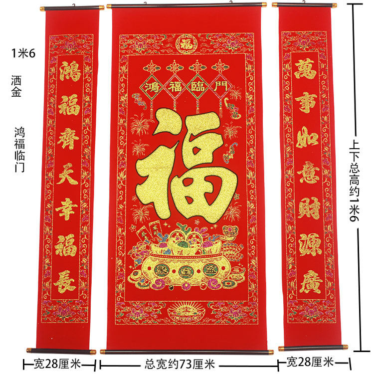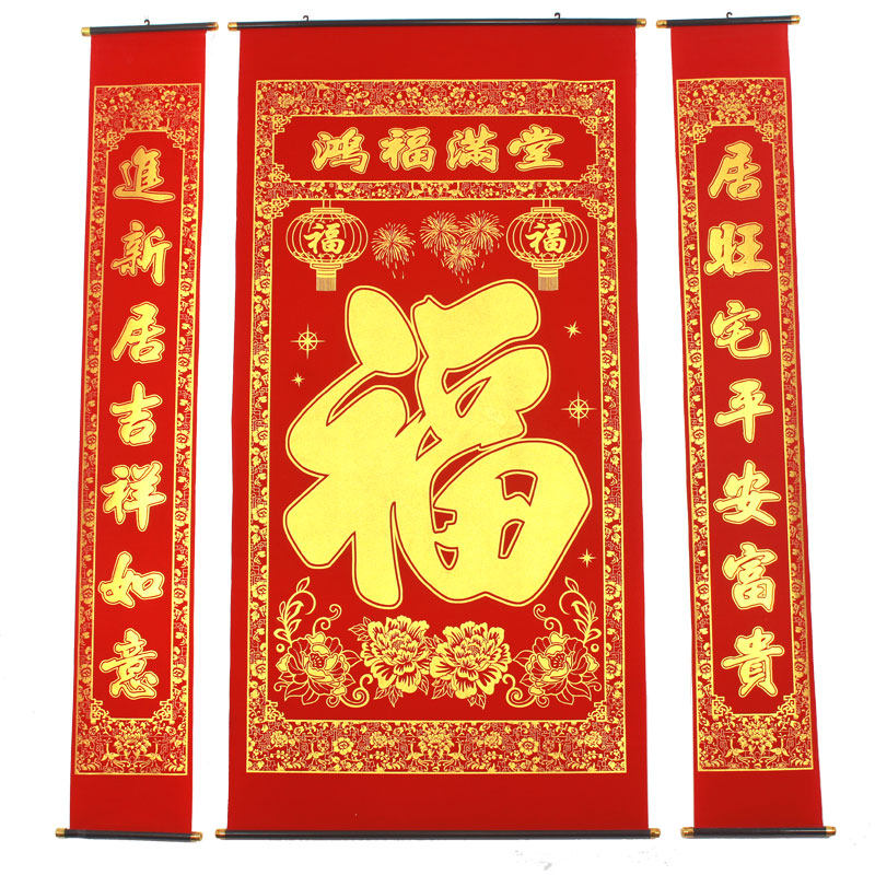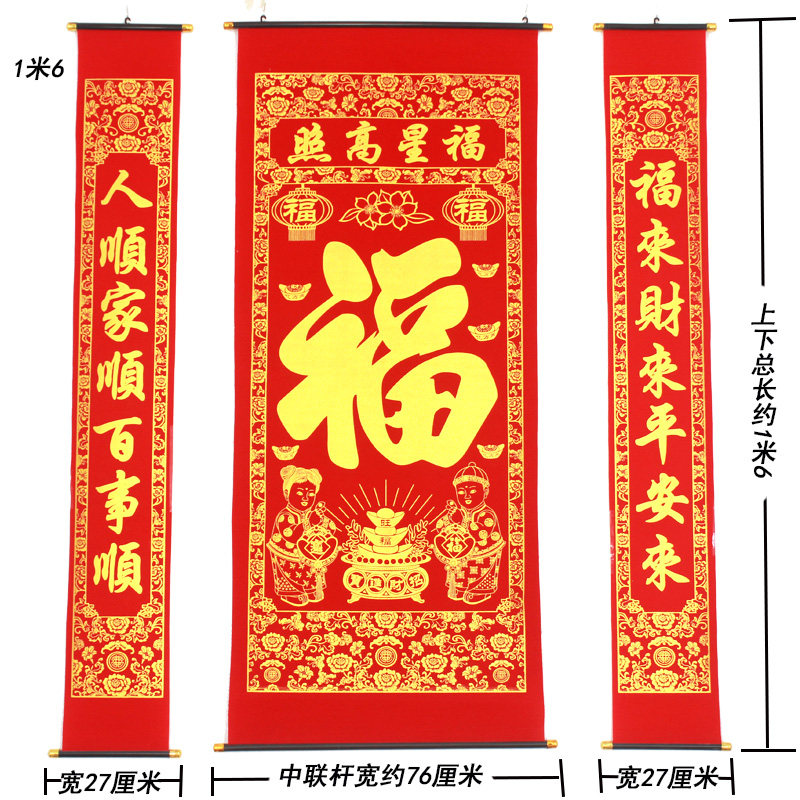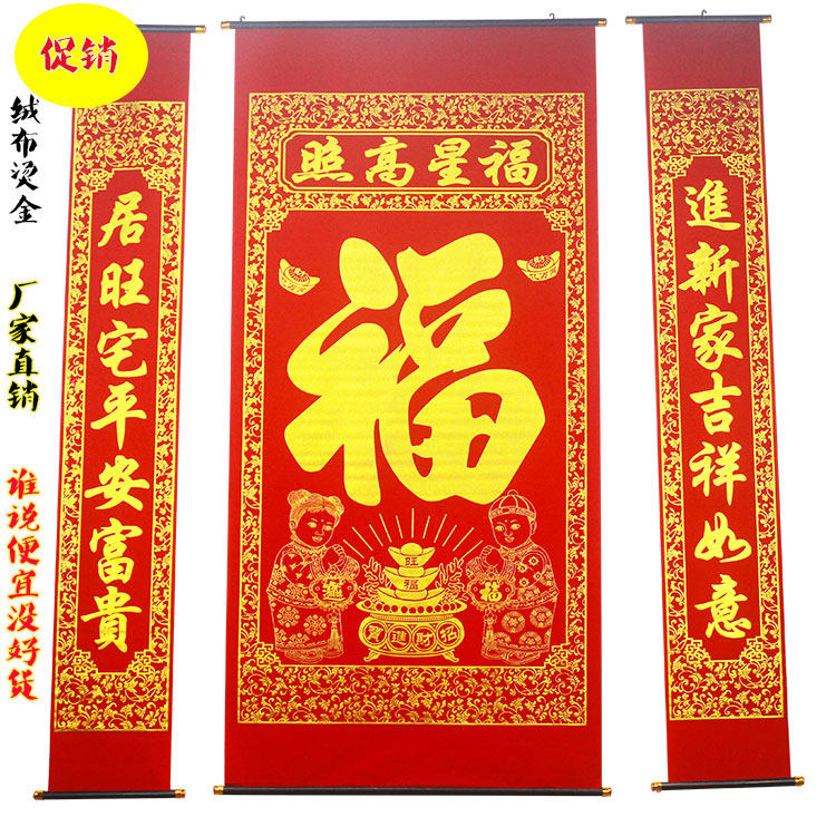 [植绒布烫金福字中堂挂画对联过年乔迁中堂农村堂屋客厅挂联春节]