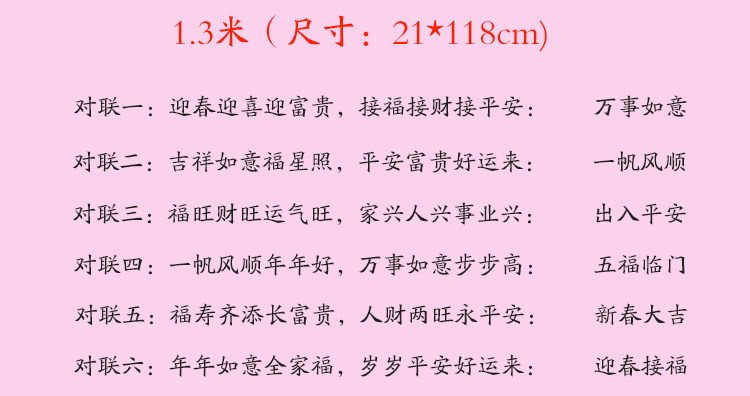 | Длина: | 1,1 метра предложения случайным, 1.3#слова случайные, 2.5 Yingchun приветствует богатство, богатство и богатство, 2.5 плавание плавным каждый год |