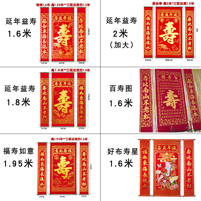 | Цвет: | 1,6 метра продленного срока службы (три купли), 1,8 метра продленного срока службы (три куплета), 2 метра продлена (три союза увеличиваются и расширяют расширение, 1,95 метра Фу Шу Руи (тройной), 1.95м, дракон и феникс, 1.6м, 1.4м, 1,6 метра Bai Shoutu (треугольник), 1.8м, дракон и феникс |