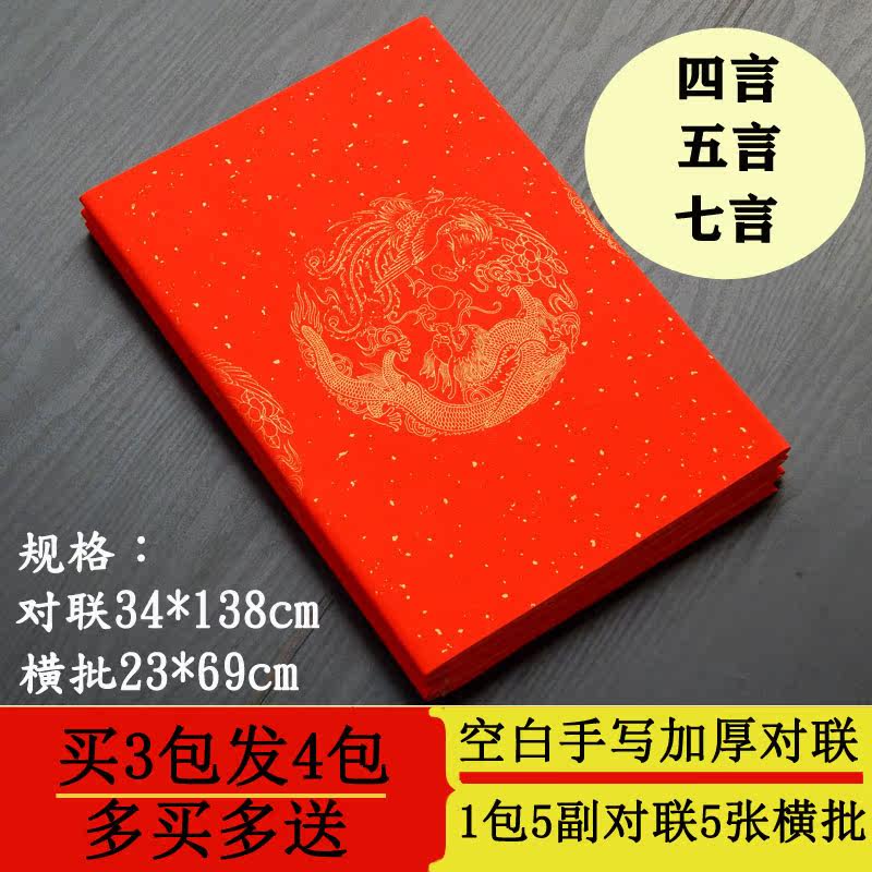 Wannianhong Пары из пяти семи парней слов пары слов сгущенных ручной писатели пустые белые пружинные купли -брызги посыпали золотая плитка в виде каллиграфии большая красная бумага