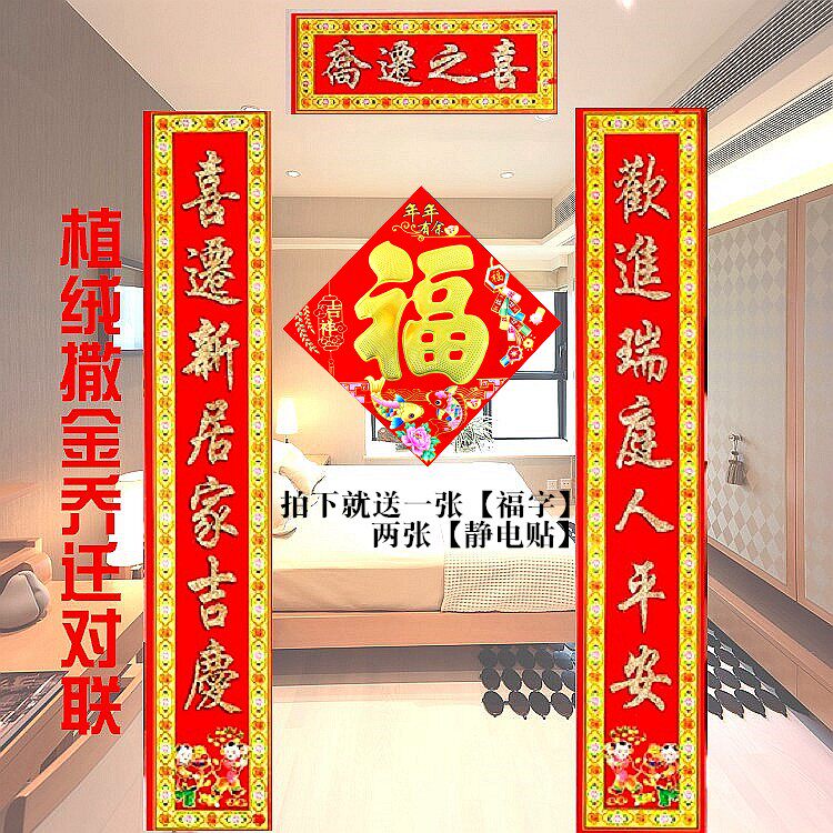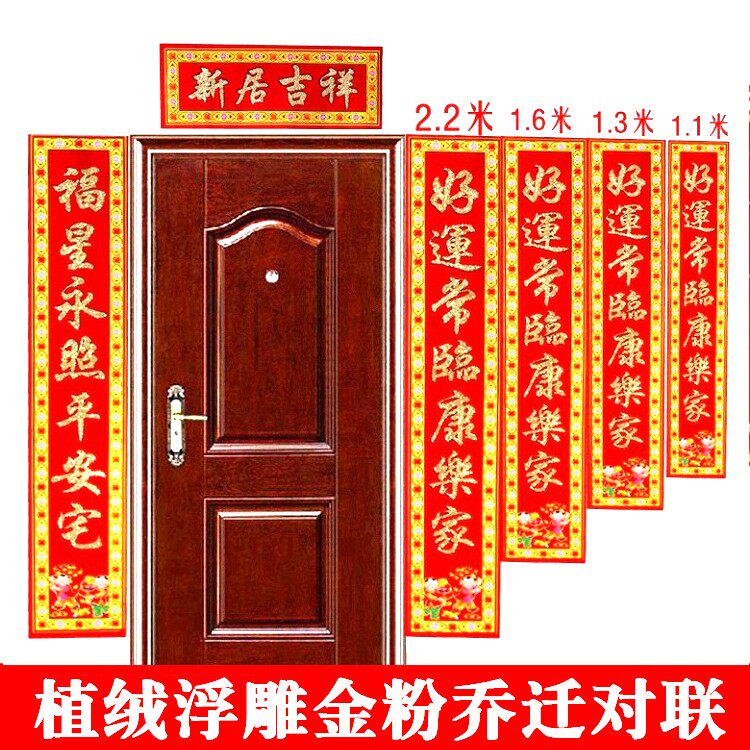 Перемещение нового дома, чтобы войти в дом и переместить дом, чтобы переместить новое домашнее благодарное поселение дверного куплета горячая каллиграфия, золотой порошок, имплантированный бархатный куплет