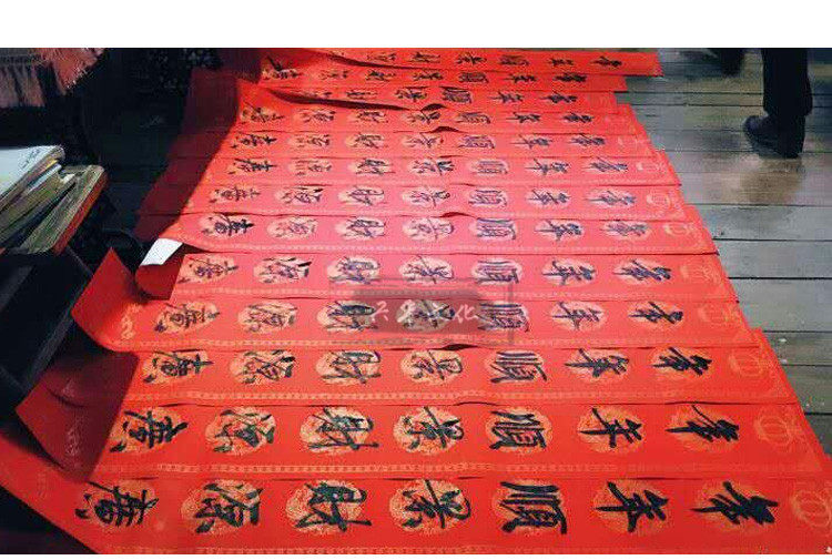 В течение всего года красная рукописная сопряженная бумага сгущенная дракон и феникс спрыгнет золотой плитка границы
