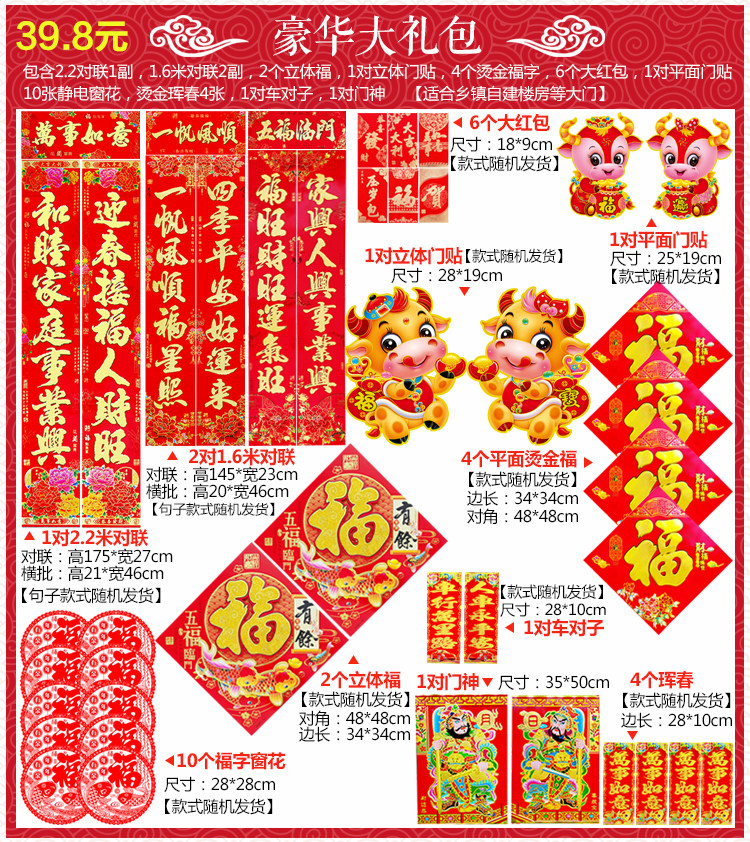Lianhe Gift Pack 2021 Новый год украшения весенний фестиваль Благословение Слово Слово наклейка коровя