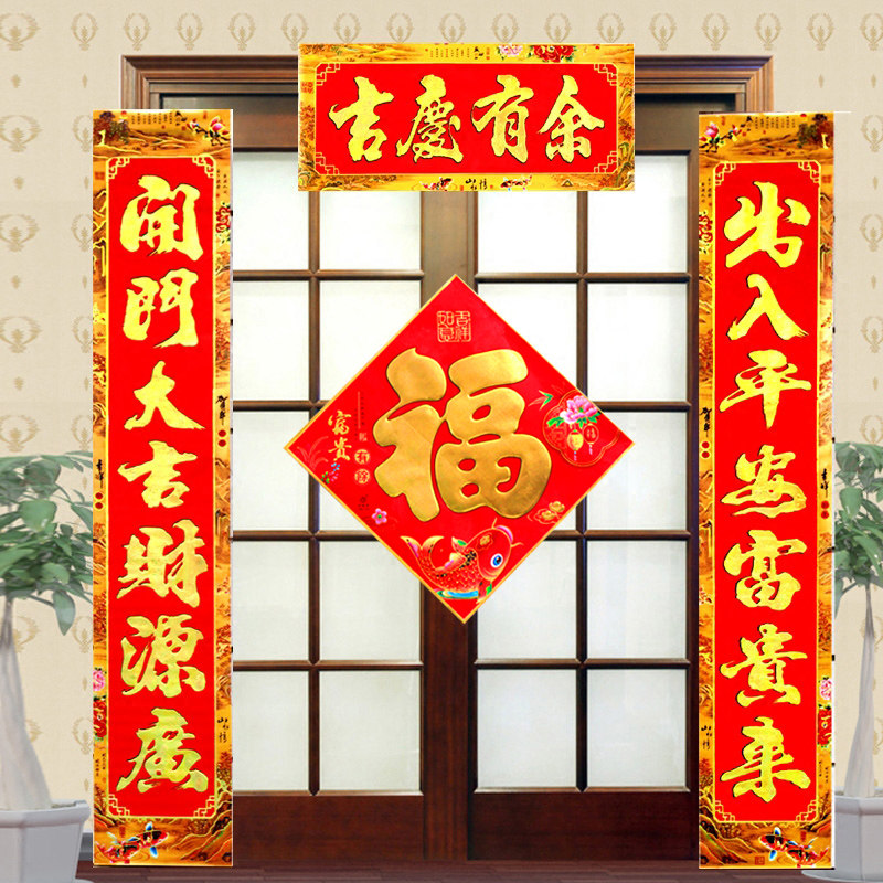 Весенний фестивальный куплет, чтобы переместить новогоднюю декоративную дверь, дверь двери, наклейка на дверь, чтобы дать персонажам благословения для новогоднего весеннего фестиваля куплета