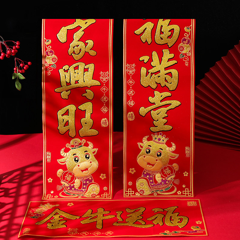 2021 год Быка Новый год 2-метровые зодиакальные куплеты бархатные трехмерные горячие тиснения и макет с золотым декором куплеты праздника весны подарочная коробка атмосфера