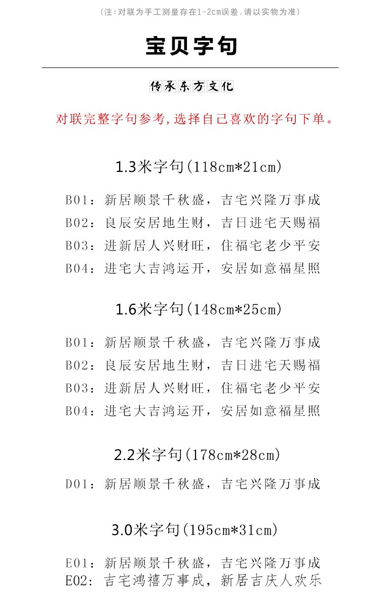 | Длина: | 1,3 метра Синьджу Шундзин Цянькю Шэн (вошел в дом даджи), 1,3 метра жителя Лянхенского жителя для богатства (благоприятная новая резиденция), 1,3 метра, чтобы войти в новый дом и процветающее богатство (вход в дом даджи), 1,3 метра, чтобы войти в дом Dajiyang Yunkai (благоприятная новая резиденция), 1,6 метра Синджу Шундзин Цянькю Шэн (вошел в дом Даджи), 1,6 метра резиденции Лянхена, чтобы заработать деньги (новый дом благодарный), 1,6 метра, чтобы войти в новый дом и процветающее богатство (войти в дом Dajiyi), 1,6 метра, чтобы войти в дом Dajiyang Yunkai (благоприятная новая резиденция), 2,2 метра нового дома Shunjing Qianqiu Sheng (вошел в дом Daji), 3,0 метра нового дома Shunjing Qianqiu Sheng (вошел в дом Daji), 3,0 метра новой резиденции Jiqing People Happy (входите в дом даджи), Полные слова, пожалуйста, смотрите страницу деталей детские слова |