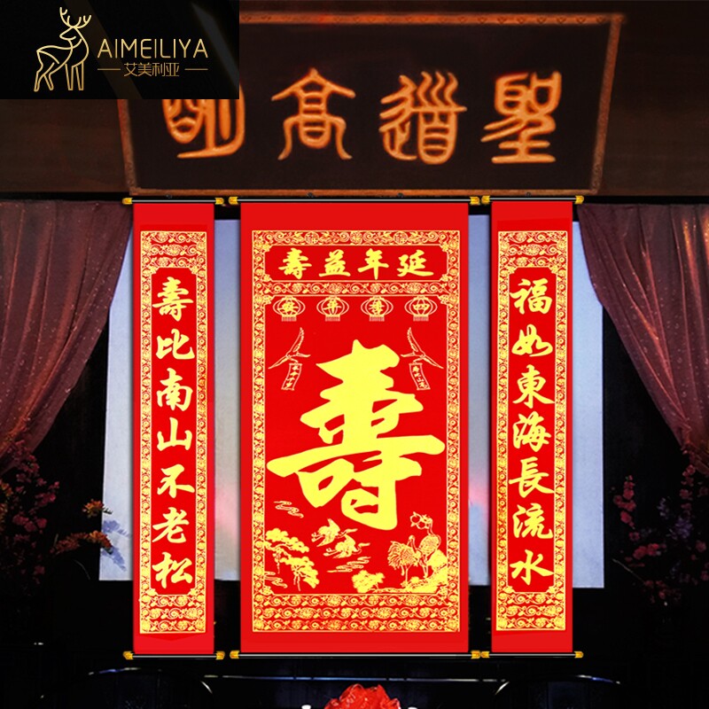 Я хочу, чтобы день рождения куплет прошел день рождения день рождения, Средний холл, высшая жизнь долголетия, висящие картины Шушхоу, он в подарке в банкете Shoushou
